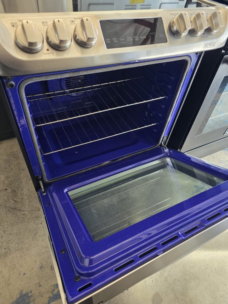 Lg slide-in electric stove, in great working condition and clean, delivery available, a little bit of wear on the burners, nothing crazy.