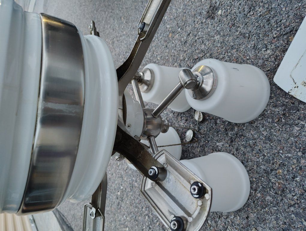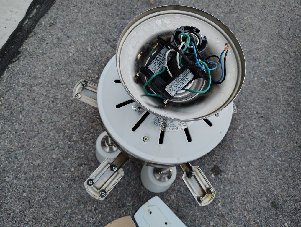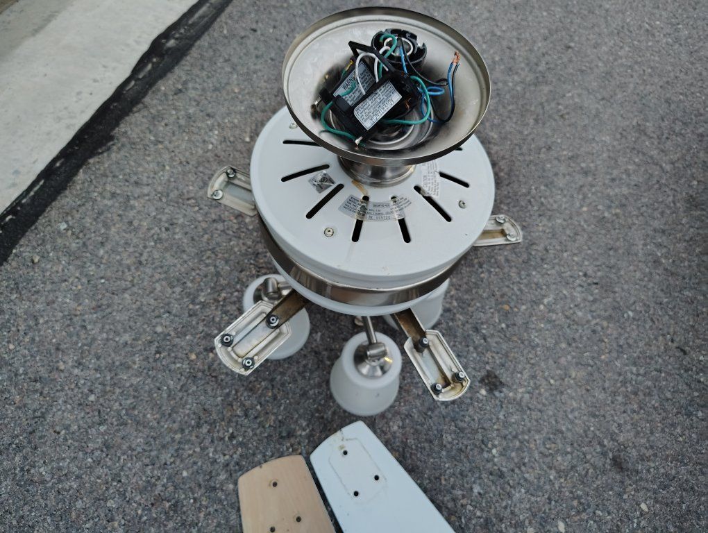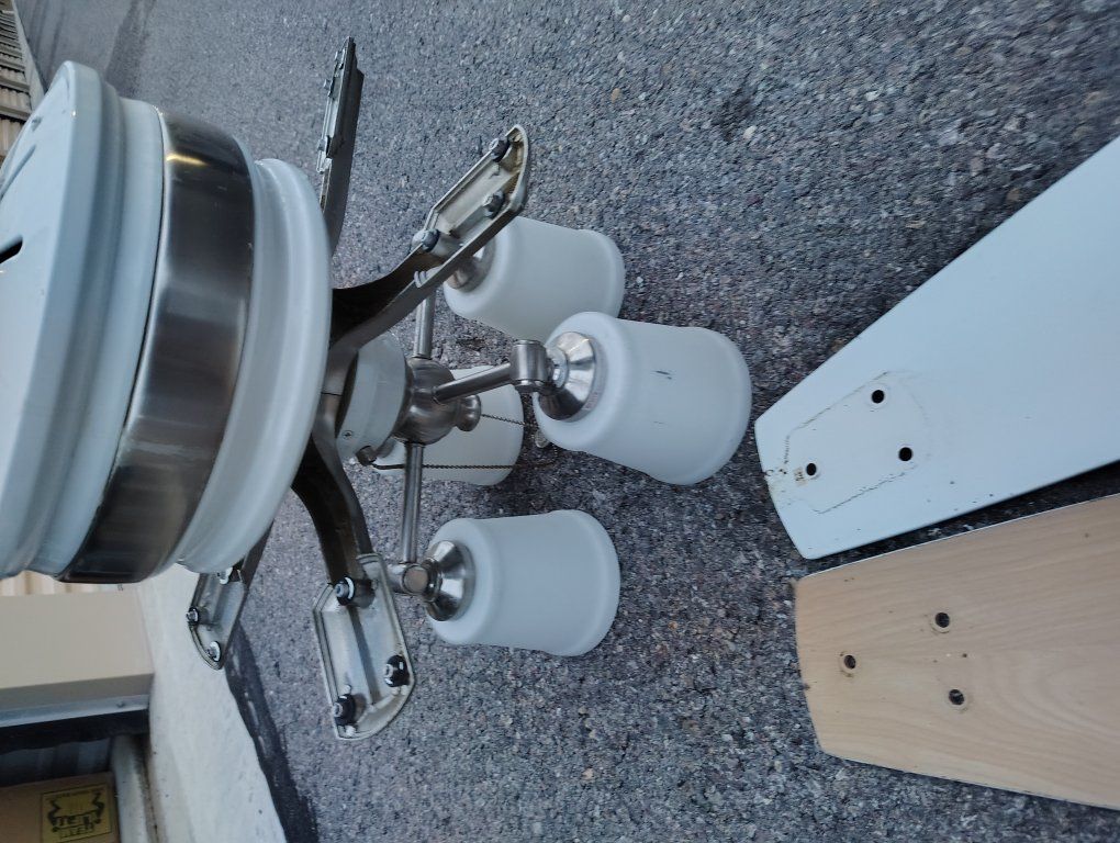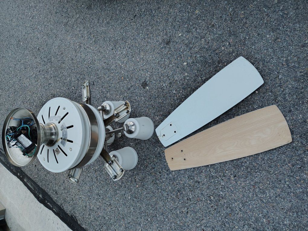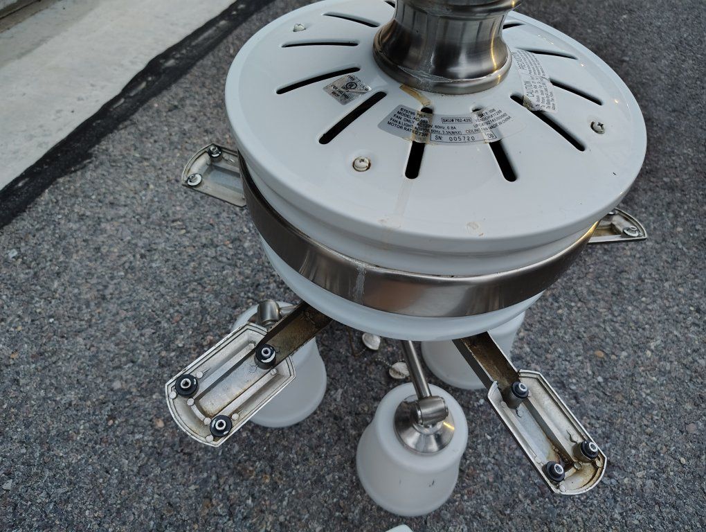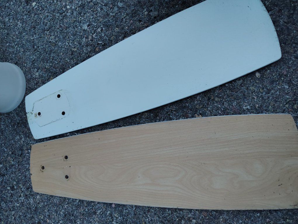 VenmoTall ceiling fan white. Fans can be flipped to a brown wood veneer look. Short blades.