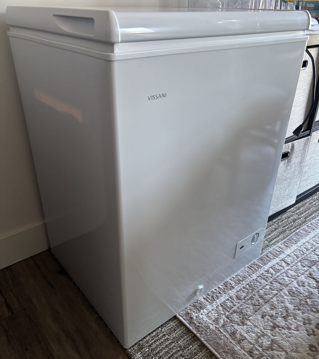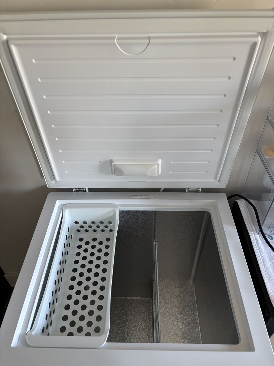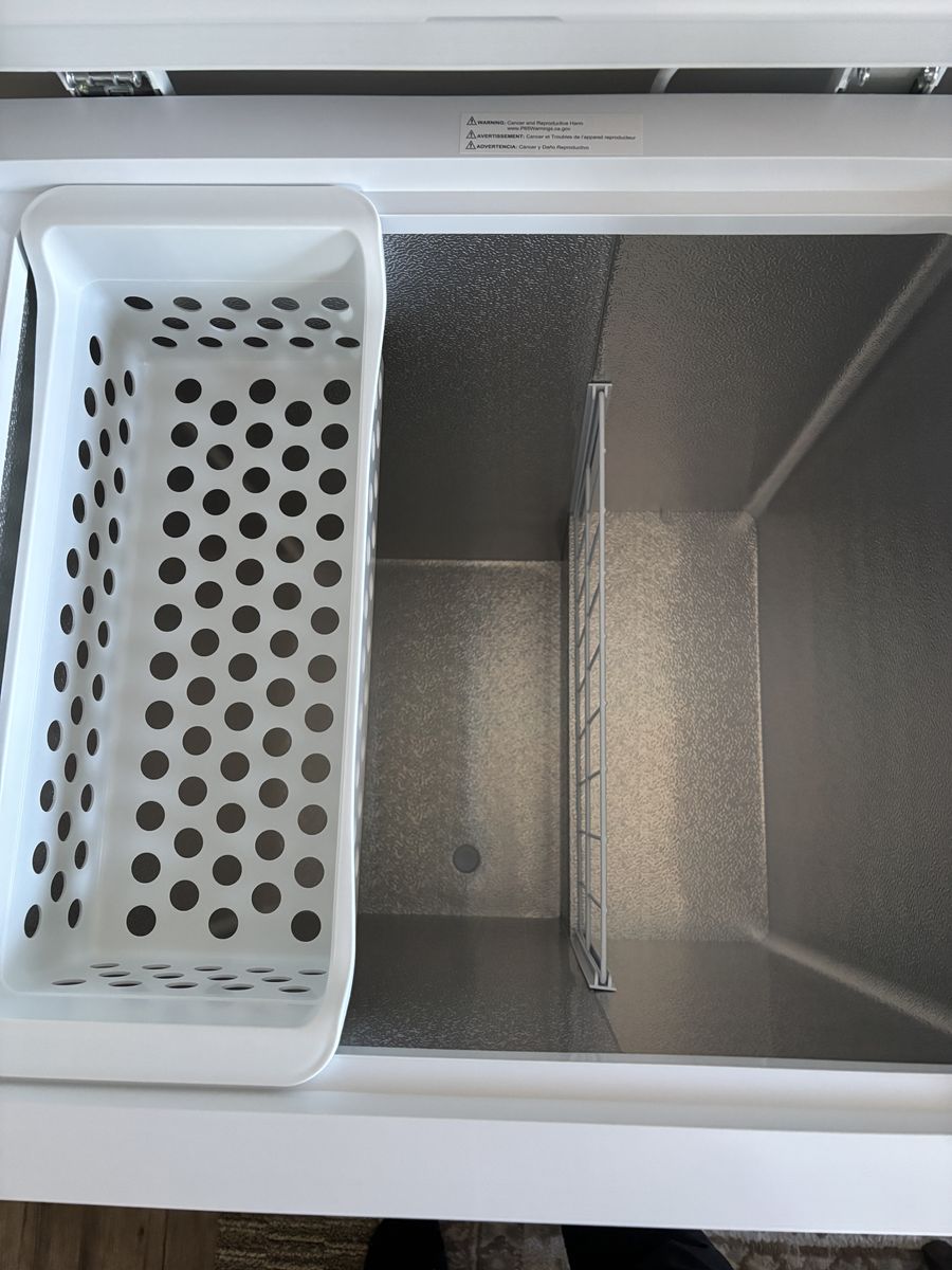 VenmoBrand new, never used Vissani 5.0 cu. ft. manual defrost chest freezer with LED light. Garage ready. Tested to perform indoors from 0 degrees F to 110 degrees F. -Adjustable, external temperature control. -2 bulk storage basket slides easily for quick access to items underneath. -Defrost water drain ensures clear path for water to travel during defrosting.