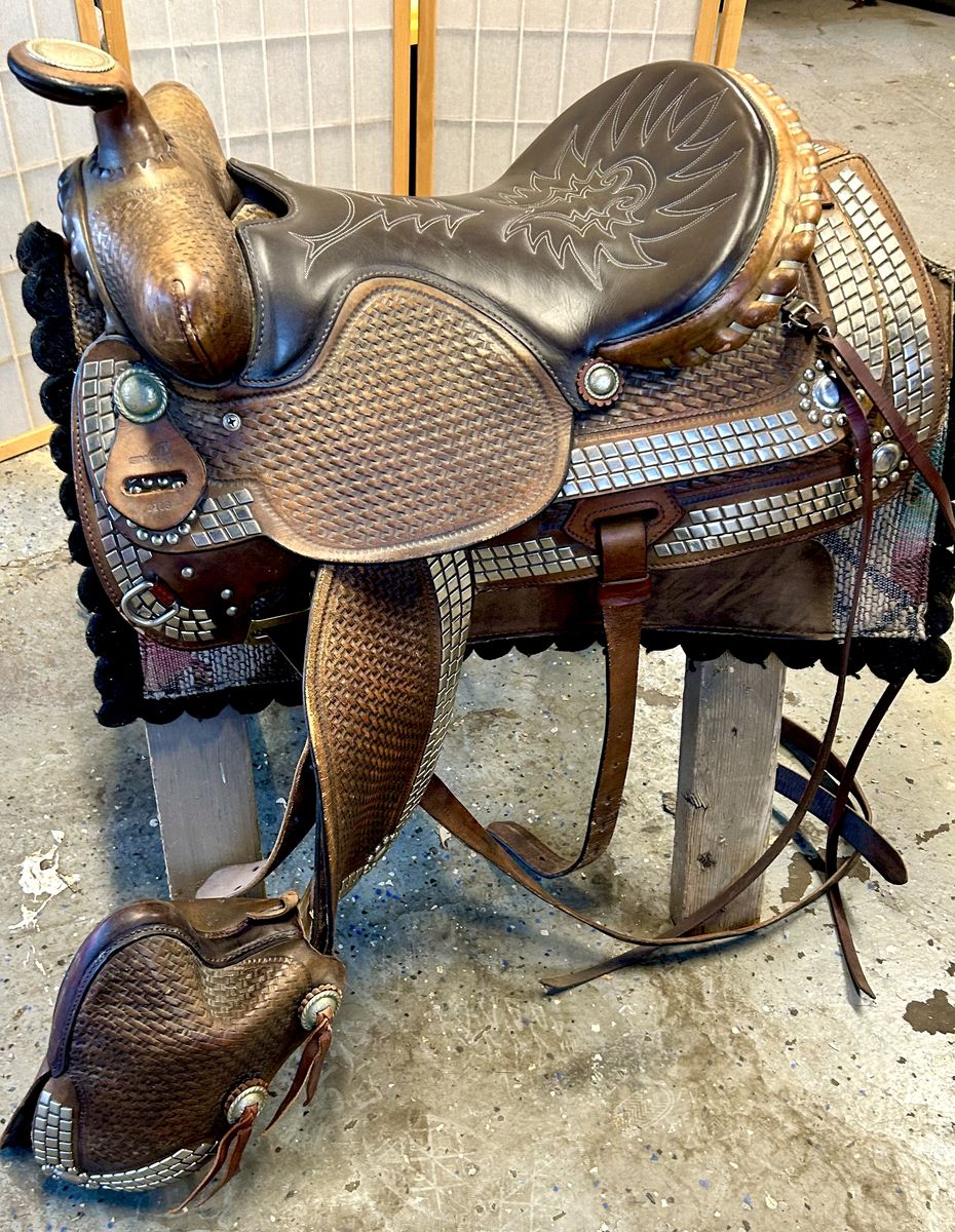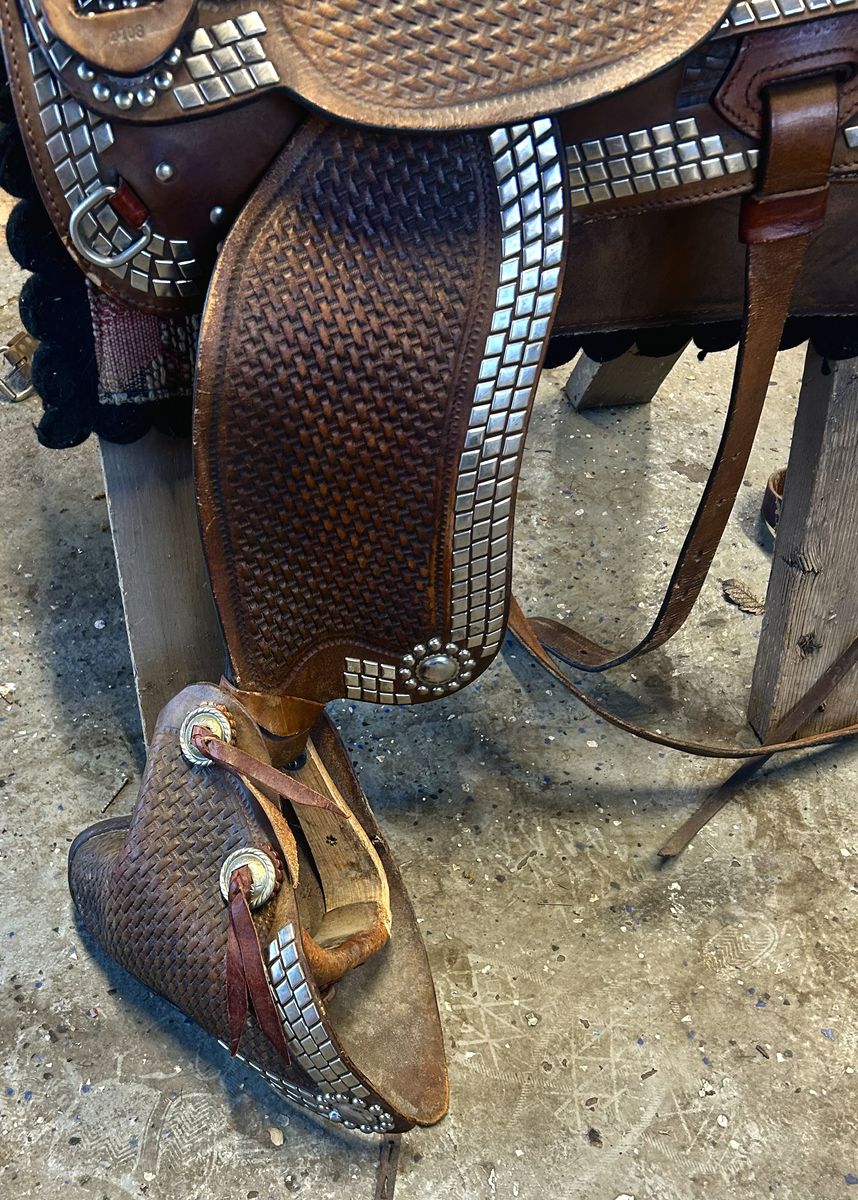 ZelleSimco studded parade saddle with covered stirrups