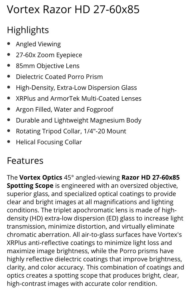 Vortex Razor HD 27-60x85 Highlights\