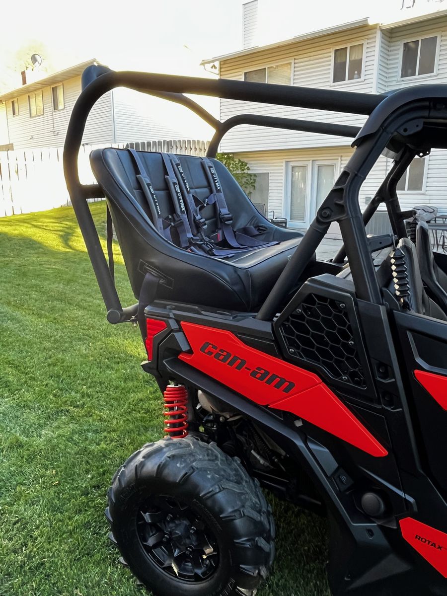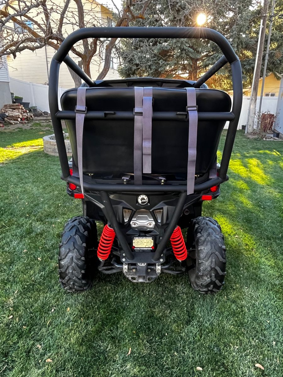 UTVMA rear bench seat and roll cage for CanAm Maverick Trail. Retails new at $2050.00. I have no grandkids small enough to want to keep it. Make me an offer
