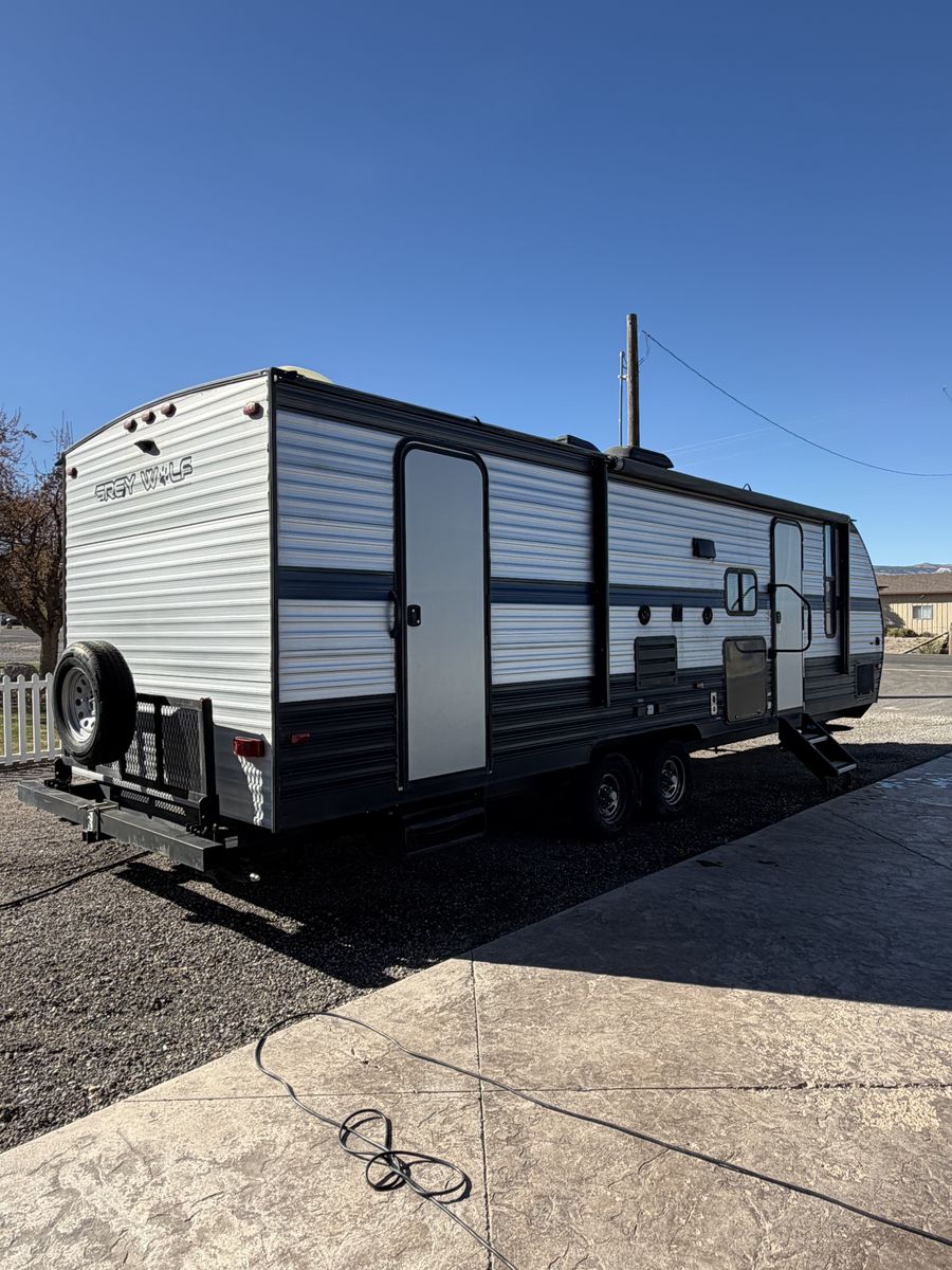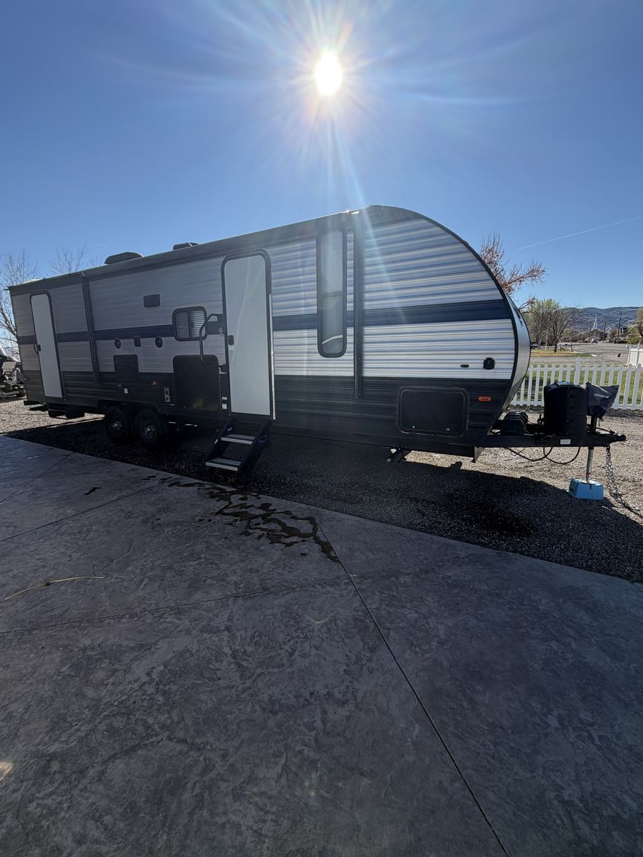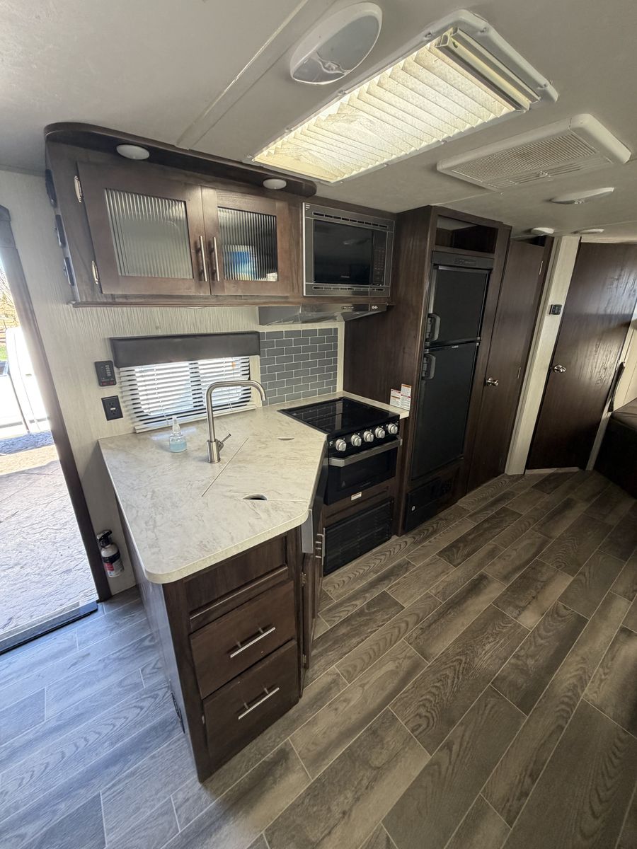 Extra clean ready to roll family trailer. Ready now for Easter. Bunks in the back and a table that folds down into a nice bed. Dual entrances along with a electric fireplace and A/C. Take a close look at this trailer it will not disappoint you.