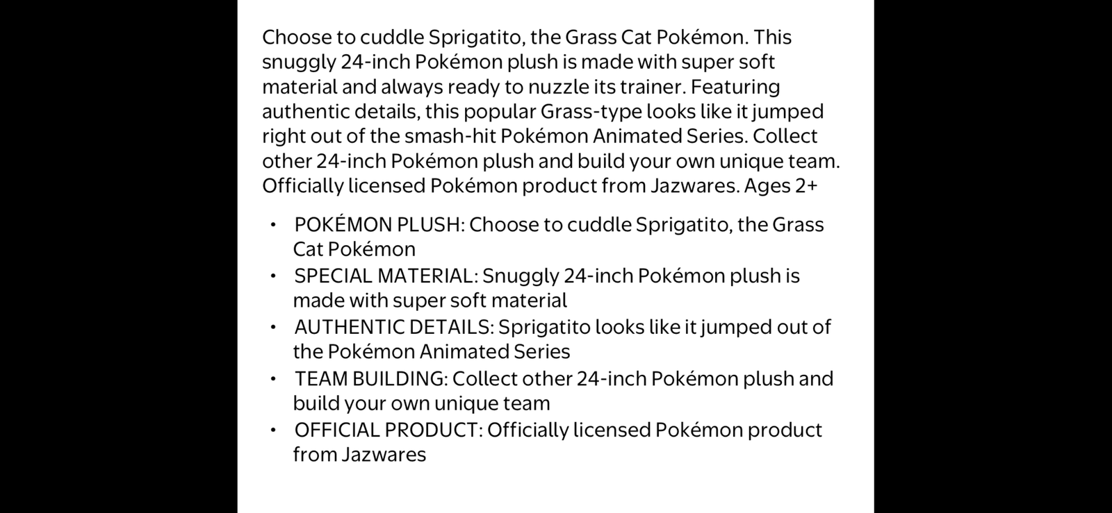 Pokemon Sprigatito Plush - 24 inch Soft Plush with Authentic Details Brand NWT. Large super cute, good quality Pokémon plush.