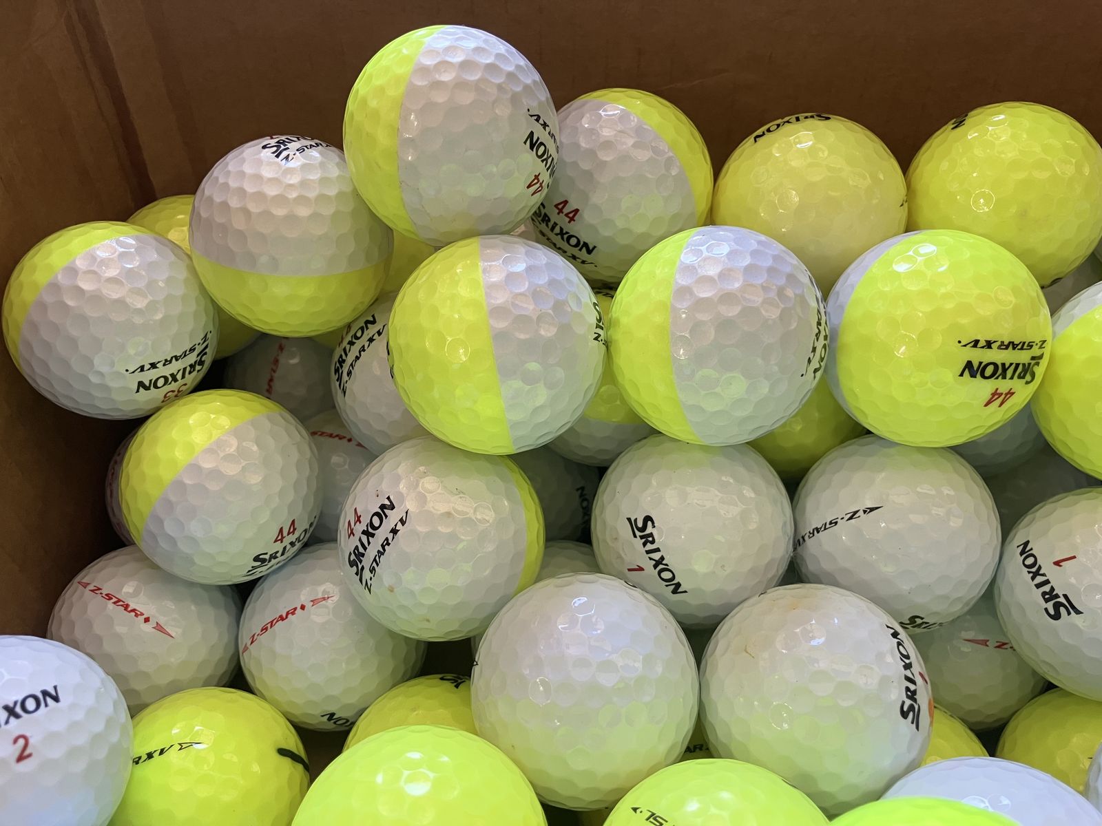 Venmo300+ excellent condition six on Z star golf balls for sale. Solid, white, solid, yellow, and the yellow and white divide model. Thoroughly washed and ready to hit. Some ball marks possible. Take as many as you need $1.50 each.