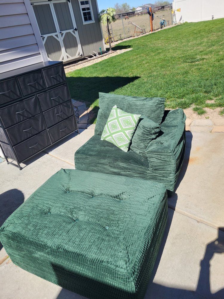Large Oversized Fabric Plush Chair w/Ottoman w/Pillows Green Stain Resistant Fabric Brand New **