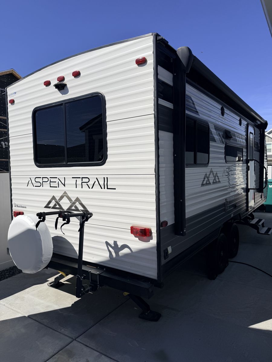 Like new! used very little, great trailer for local and long distance get aways. The 2021 Dutchmen Aspen Trail 2180RDWE is a 25-foot 5-inch travel trailer designed for 4-6 people, with a dry weight of approximately 4,390–4,495 lbs and a 3,105-lb carrying capacity. This unit features dual axles, a rear dining area (RDWE), and a, queen-sized bed, often including a heated/enclosed underbelly. Includes bedding, pots and pans, kitchen utensils, items needed to set up the trailer and equalizer hitch! Clean title in hand, take a look and give me a call.
