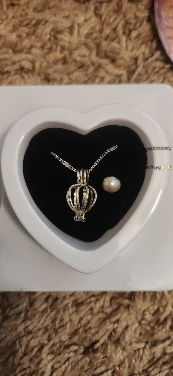 VenmoGot this as a gift. Just opened to see what color Pearl it is. Beautiful silver chain, with Cream Pearl inside. Carry your dreams with you. Comes with box, description, (maybe oyster (if you like) I cracked opened). FCFS X-POSTING Smoke-free home.