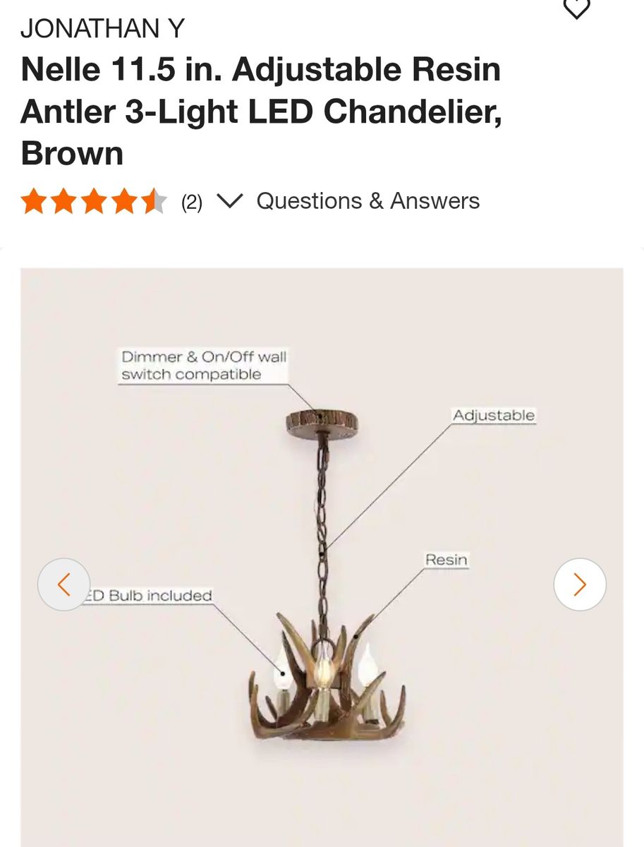 VenmoJonathan Y Nelle 11.5" adjustable resin antler 3-light LED chandelier. Still in origanal packaging. Original retail around $160. Asking $90 each. I have two available for sale. . I bought huge lot Lighting and electricat products at large discount so I am able to pass savings on to you. CASH or VENMO prefered. Best way to contact is text at 385-358-7588 -- NATE