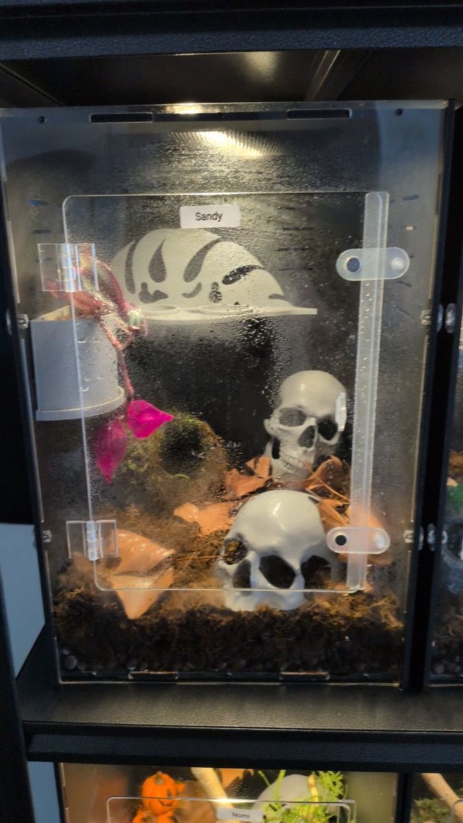 They each come with substrate Powdered orange isopods 1 planter and reptile safe plant 2 skull hides 1 feeder shelf 1 PVC enclosure