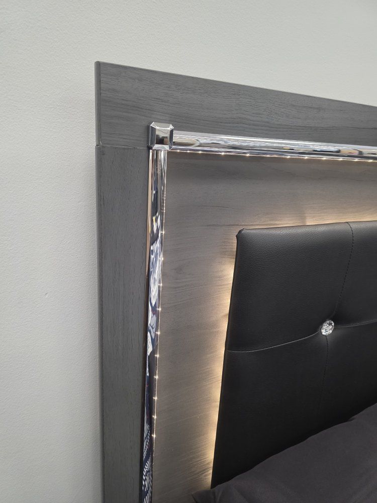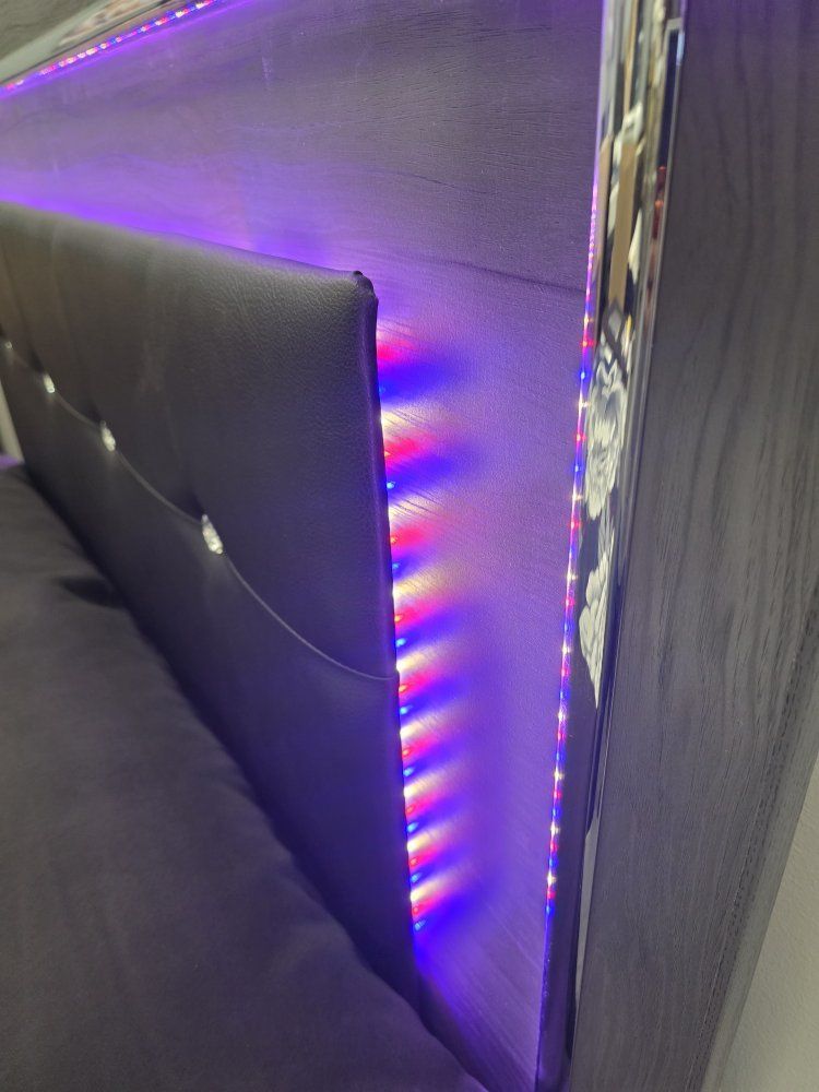 This bedframe is a gray color with LED lights around the headboard and it can be switch to different colors. Queen Full and King size available. We deliver and set up. Sameday available. We finance.