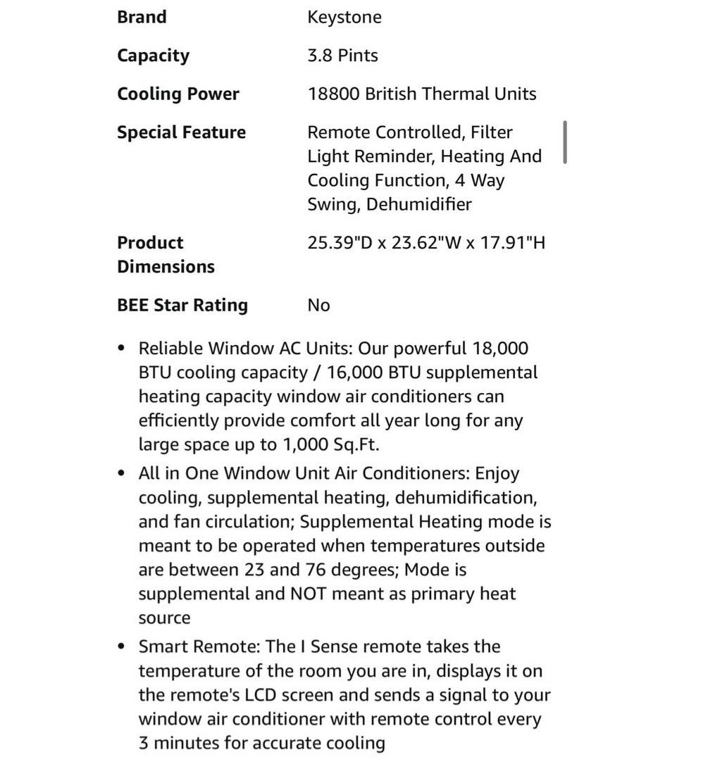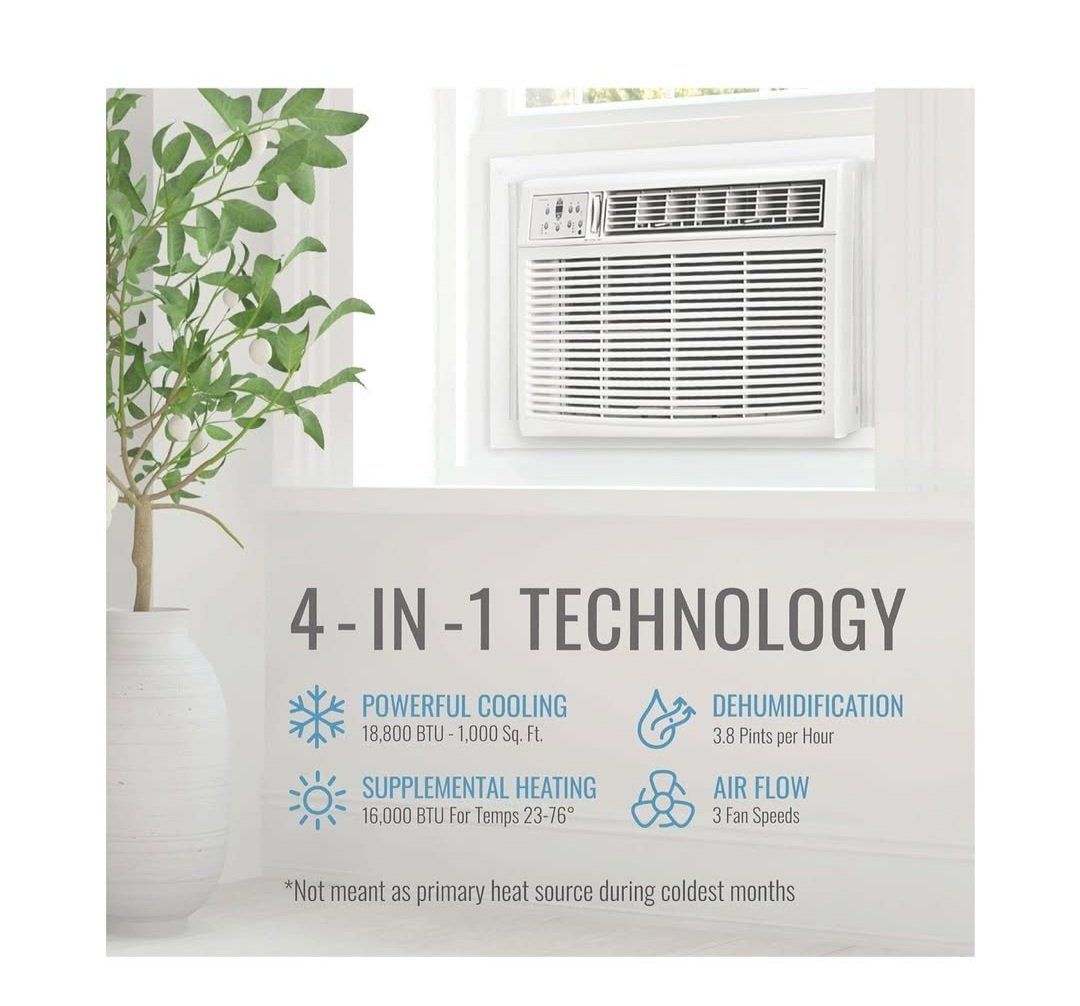 Keystone 18,800 BTU Window-Wall Air Conditioner with 16,000 BTU Supplemental Heating, 230V, Window and Wall AC Unit for Living Room, Apartment, Large Rooms up to 1000 Sq.Ft.