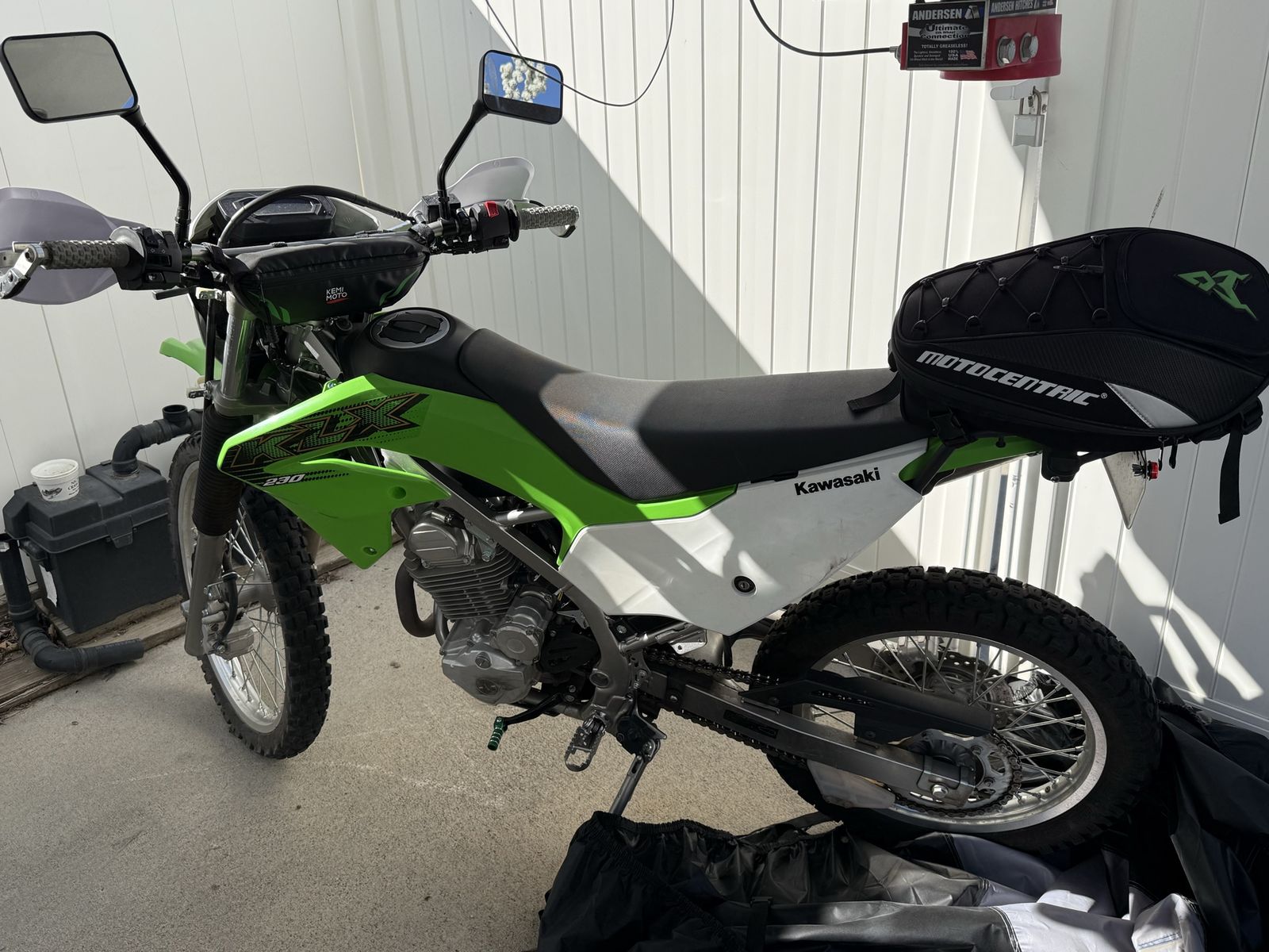 Great shape bike bought it last year but don’t ride it as much as I hoped. Has 3,264 miles. I added a luggage rack and bag on the back. It also has a handle bar bag that’s nice for your phone and registration. I added a skid plate as well. Also bought a new battery for it when I bought it. This bike is electric start there is no kickstarter. Street legal.