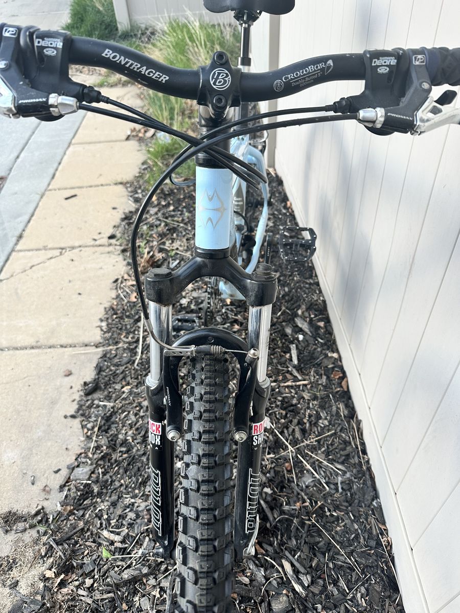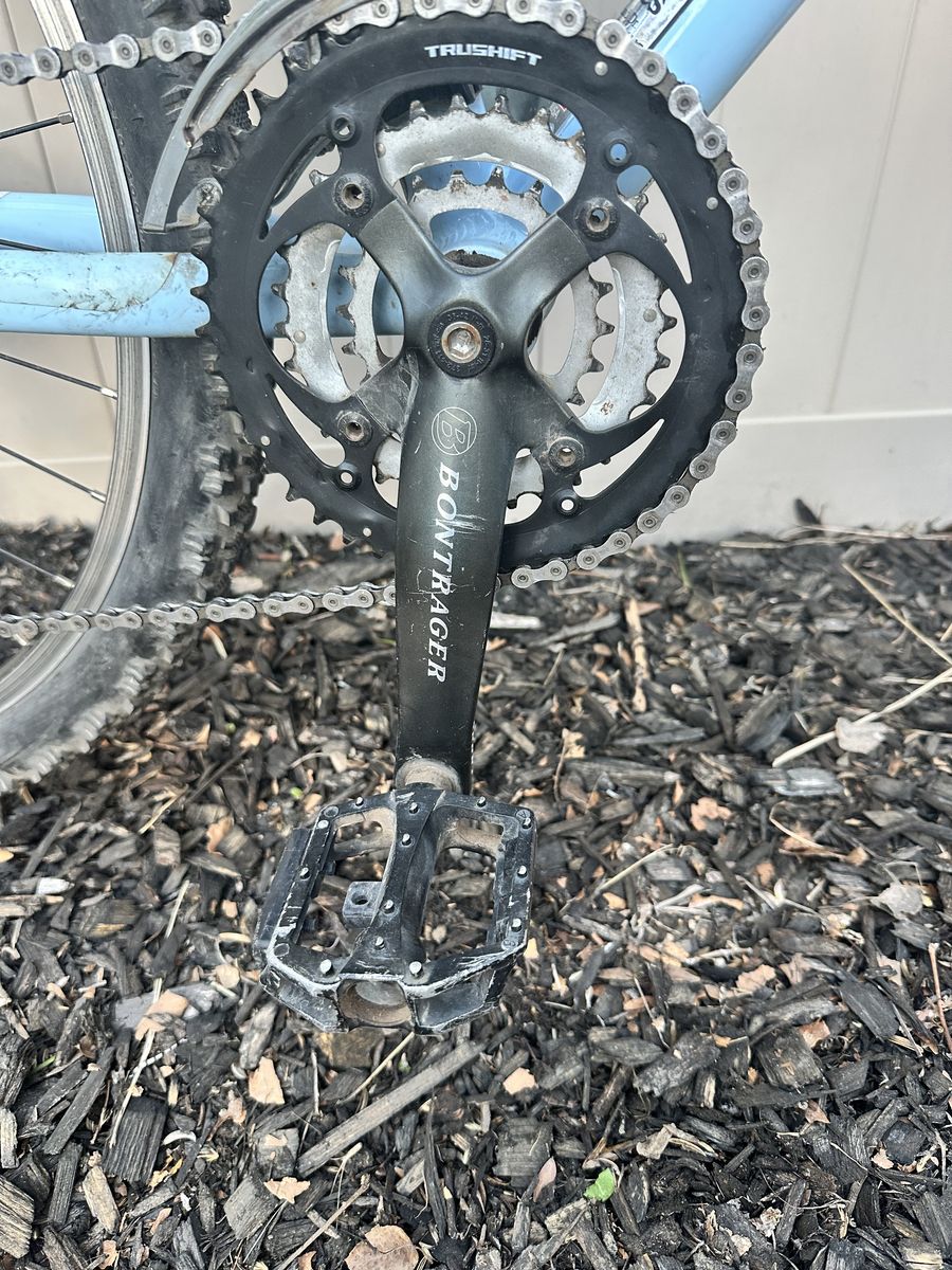 ApplePayLove this bike hate to sell but going back to court with my narcissistic ex. On that note it's in great condition, couple scratches see in pics but works great! Just replaced the chain and wheels. Newer brakes too! Bonatrager components with shimano deoro2 derailluers. $150 OBO.