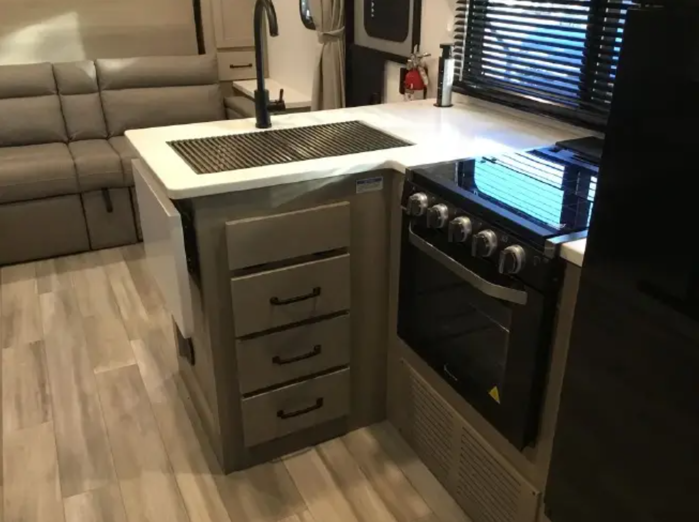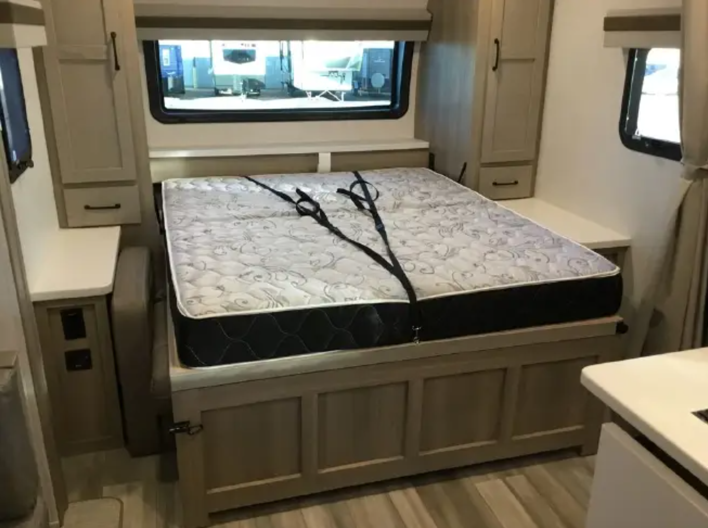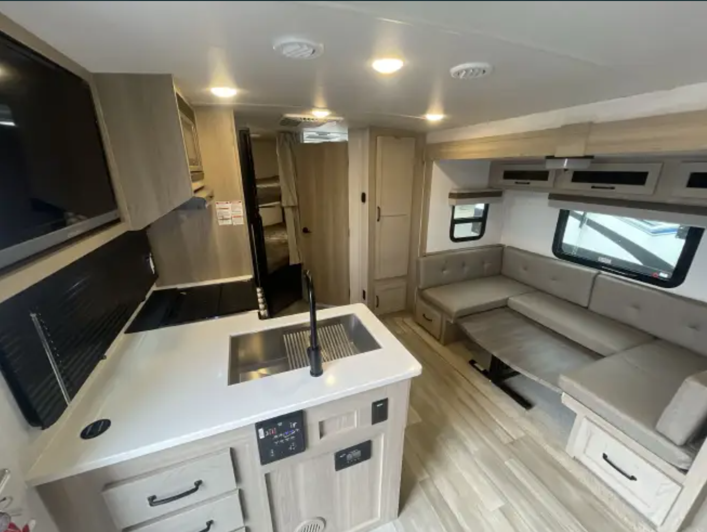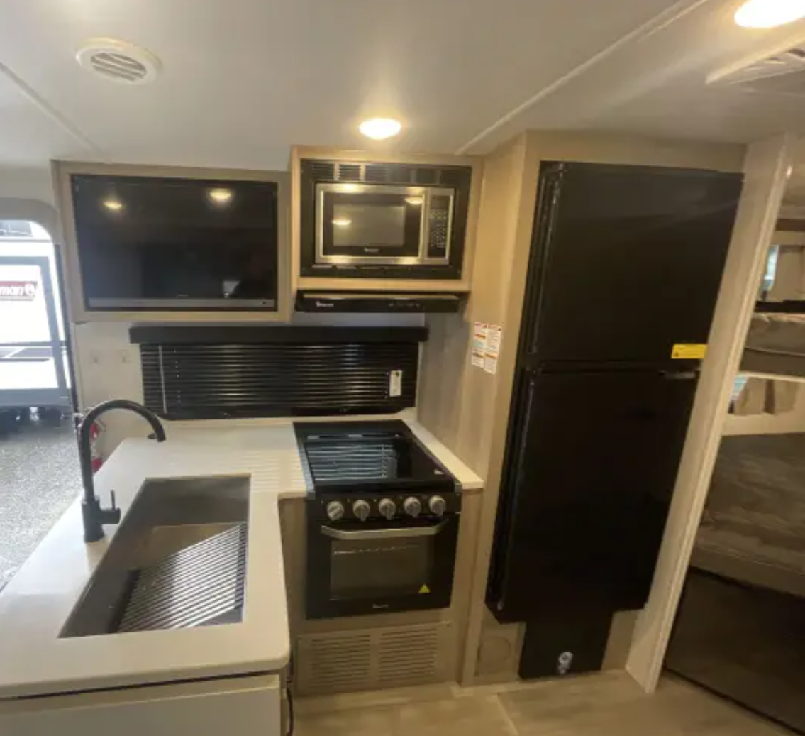 The layout also includes a full kitchen, full bathroom, and plenty of storage throughout, making this a great option for weekend trips or extended travel.
