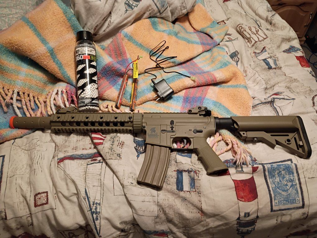 airsoft rifle fully automatic works in perfect shape batteries good got ammo To Go with it just need to sell. $200 obo.