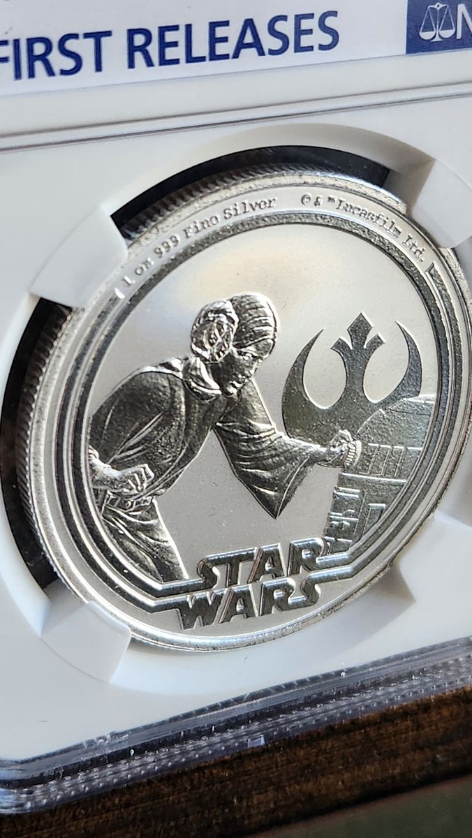 Selling a stunning 2025 Niue $2 Star Wars Princess Leia 1 oz .999 fine silver coin, graded MS 70 by NGC with Star Wars S2‑D2 label and First Releases designation. Sealed in official NGC slab with verification label.