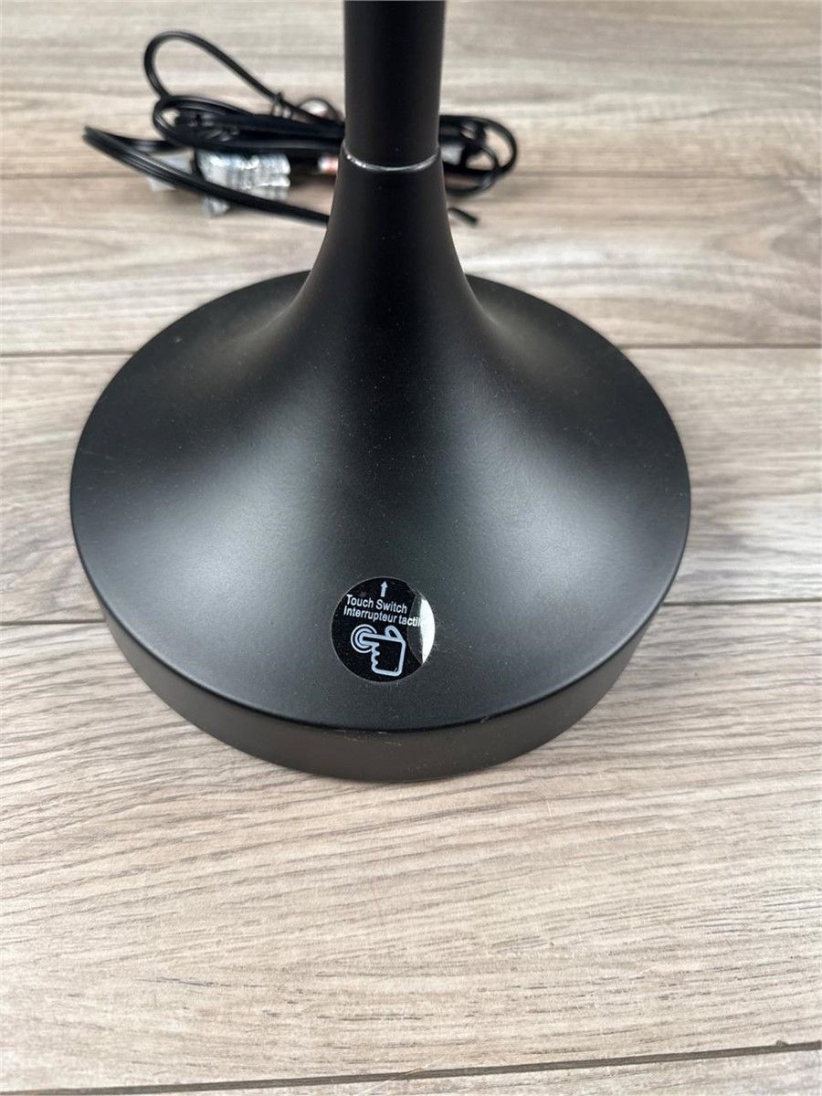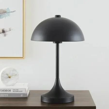 Black dome desk lamp Features dome-shaped shade with tulip-shape base Available in brass or black finishes Sturdy round base 18-inch overall lamp height Modern lighting accent for living rooms, bedrooms, offices, dorm rooms, and more Requires a 60-watt max E26 Type A bulb or a 10-watt LED bulb (not included) Easy touch on / off switch Coordinates with the Better Homes & Gardens Modern Dome Floor Lamp (sold separately)