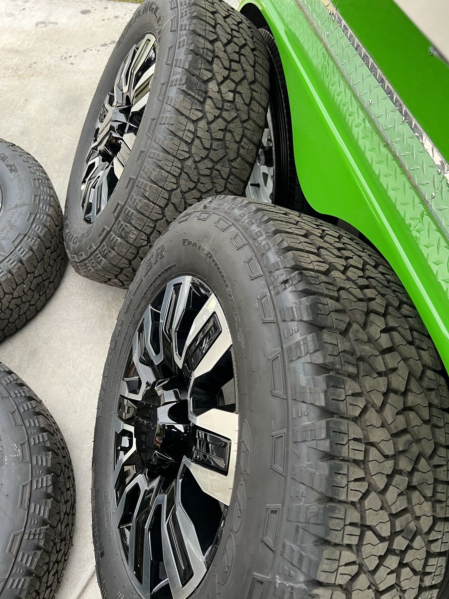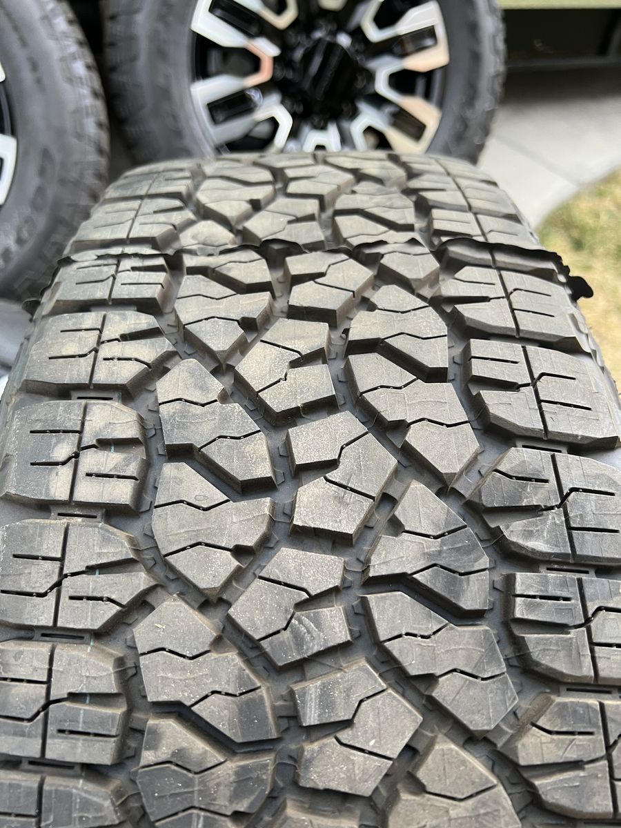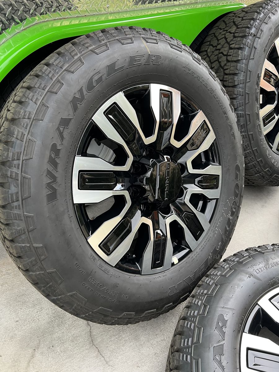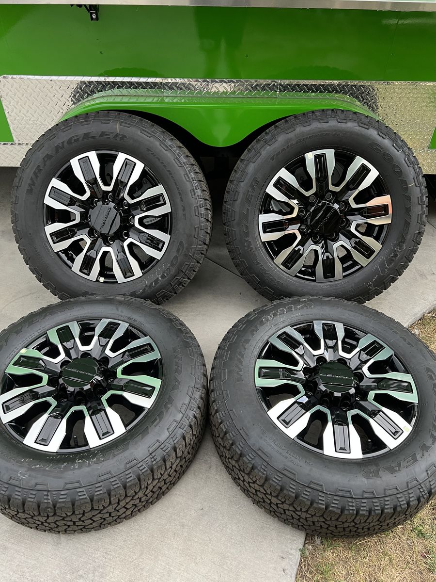 Selling my brand new gmc Denali 2500 ultimate wheels and tires only 10 miles on them tires are 275/65r20 Goodyear wrangler trail runner A/T load range E 10ply