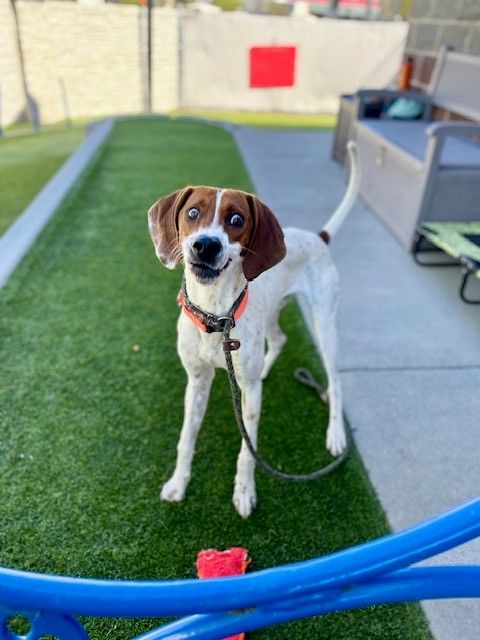 I'm your one-year-old bundle of energy, fun, and nonstop entertainment! I'm a true party animal who thinks everything in life is meant for exploring, adventuring, and play, and I'm always ready to bring the excitement wherever I go. I'm super smart and already know some basic commands, but I really thrive when I have a job to do-give me something to focus on and I'll shine! I'm active, athletic, and absolutely love toys and treats (the ultimate motivators), plus I'm great with other dogs and full of affection to share. If you're looking for a playful, lively companion who will keep you laughing and on the move, I'm your guy!