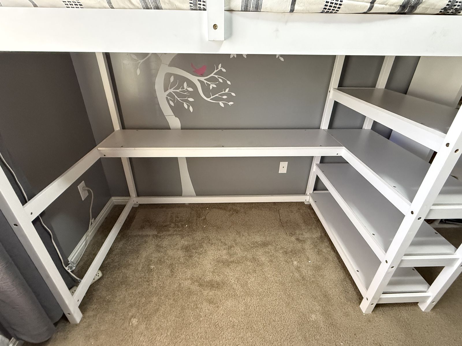 VenmoI bought this for my daughter a few months ago and she’s decided she wants to redo her room. The bed is in perfect condition with very minimal use. It is very sturdy, doesn’t rock or squeak. It has not yet been disassembled so the buyer knows exactly how the bed will reassemble and can verify all parts are present.