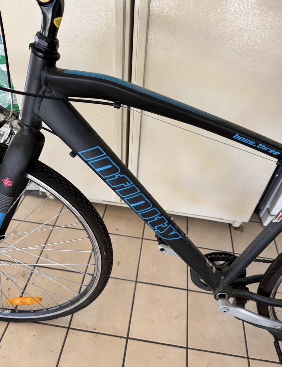 ZelleUsed Infinity Boss Three 7 Speed 700c Men's Hybrid Bike Matte Black in West Valley pick up only. Front tire is popped. $100. Text me @ 801-403-5702 if interested