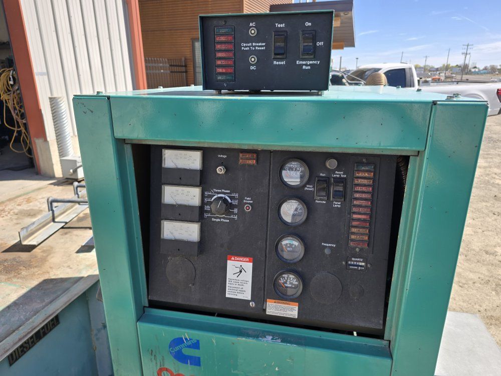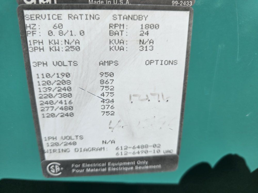 Onan 250kw skid mount diesel generator, L-10 Cummins diesel engine, 596 hours, single and three phase, former municipal machine, voltages in the last picture 208-734-3434