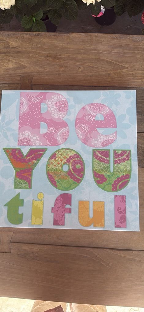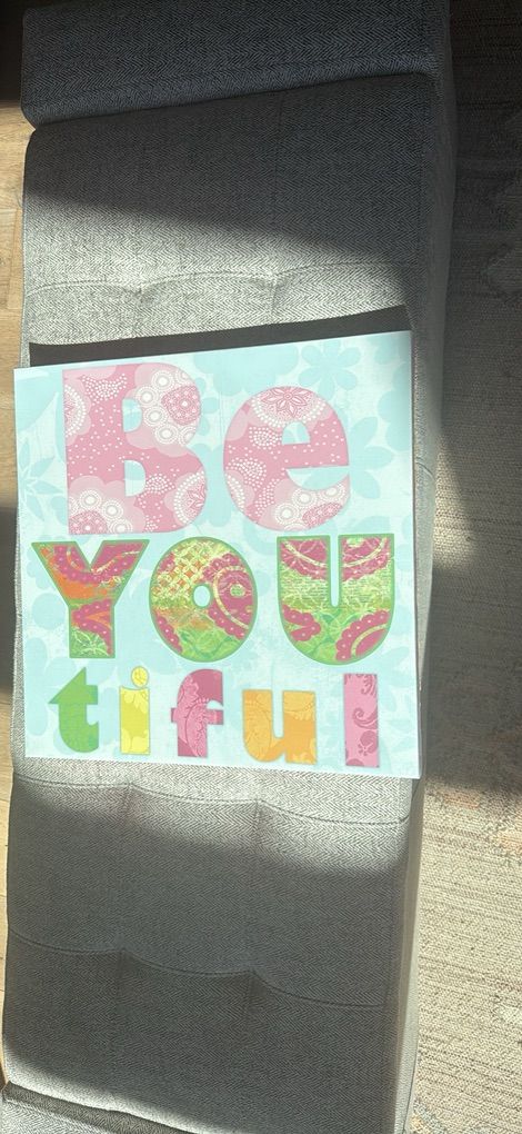 VenmoCute encouraging canvas wall decor for a young girl, saying Be-YOU-tiful. I think we bought this at Hobby Lobby. No damage or signs of wear.