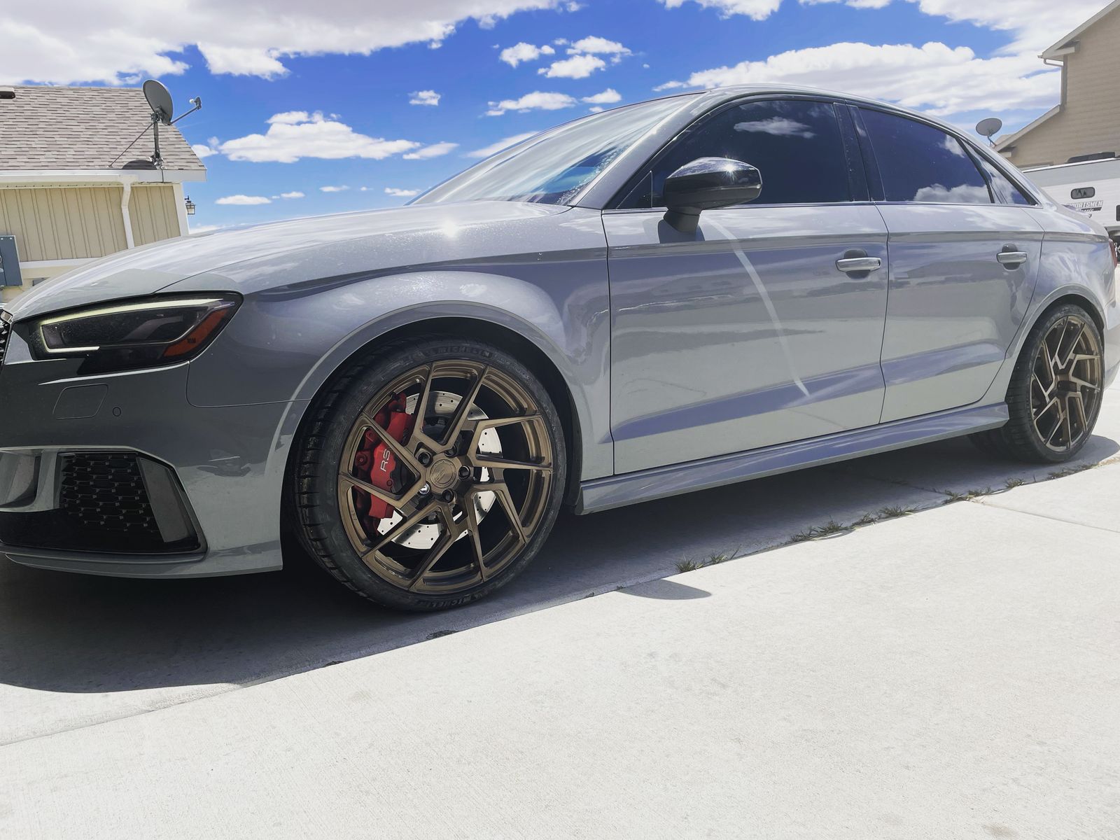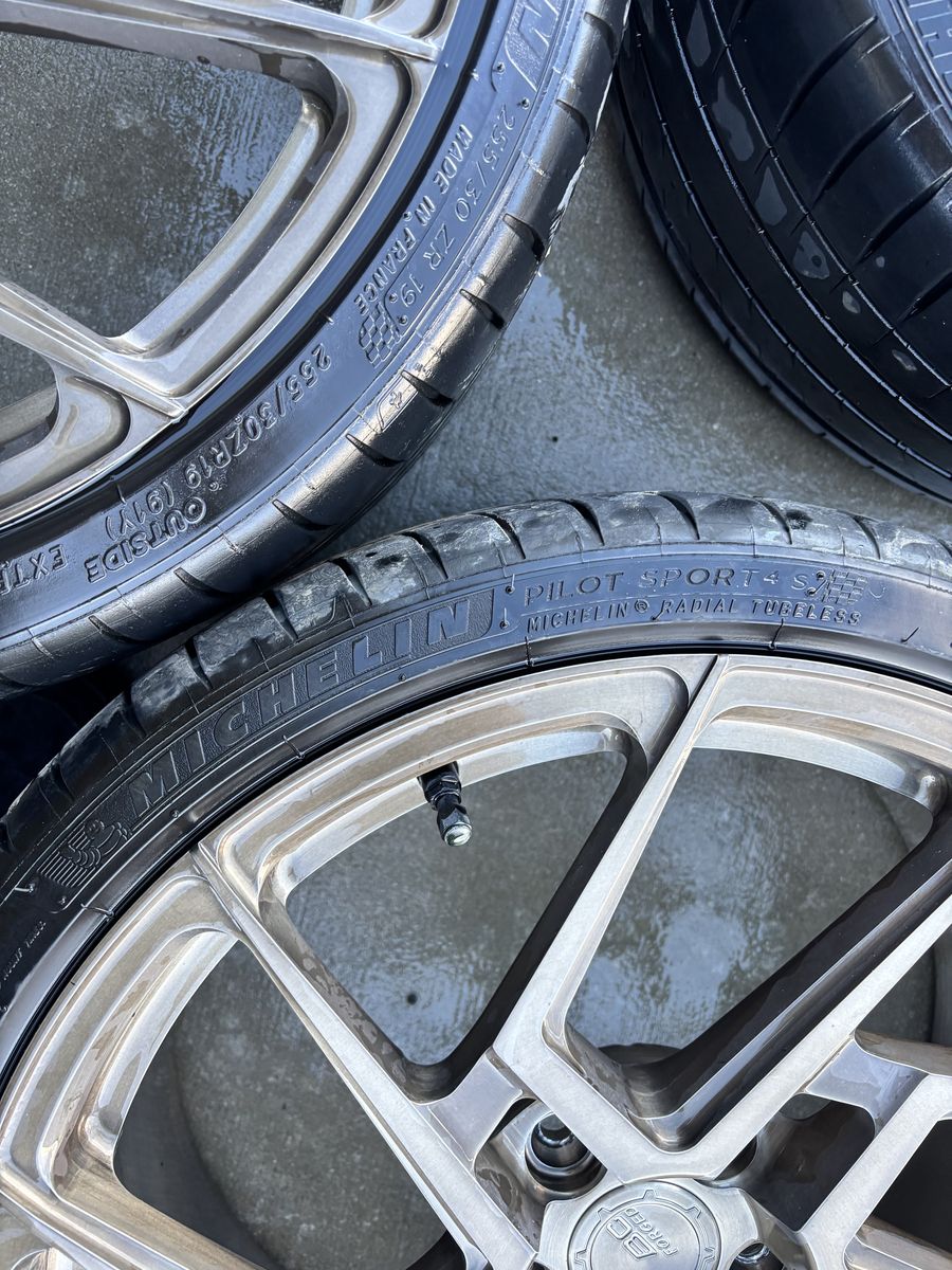 Custom BC forged Audi wheels off an RS3. They are brushed bronze color. 19x9.5 +45 offset. 57.1 hub bore. In good condition, stored every winter. Tires are Michelin pilot sport 4s, with lots of tread left. Located in rock springs, wy but I do travel to salt lake area often.