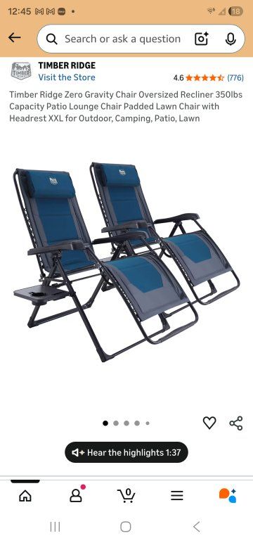 CashAppOversized Padded Zero Gravity Navy/Gray Metal Reclining Outdoor Lawn Chair w/Side Tray all 3 for 300 or your best offer
