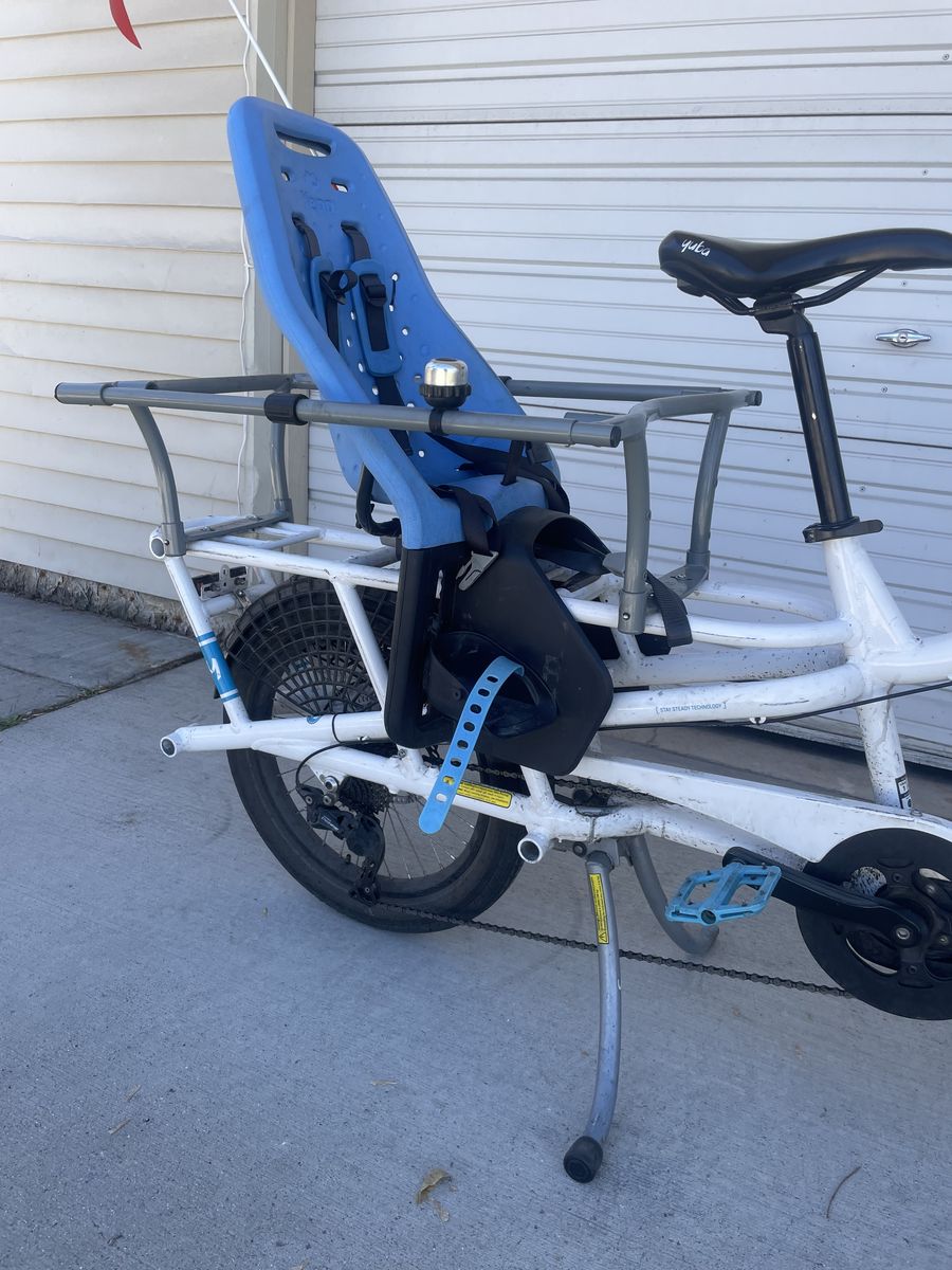 The bike includes the Yuba Monkey Bars, which is great for enclosing a seat like the Thule Yepp (seat not included), the running boards, and pads for the tail for older passengers. And of course, the Yuba bread basket with net.