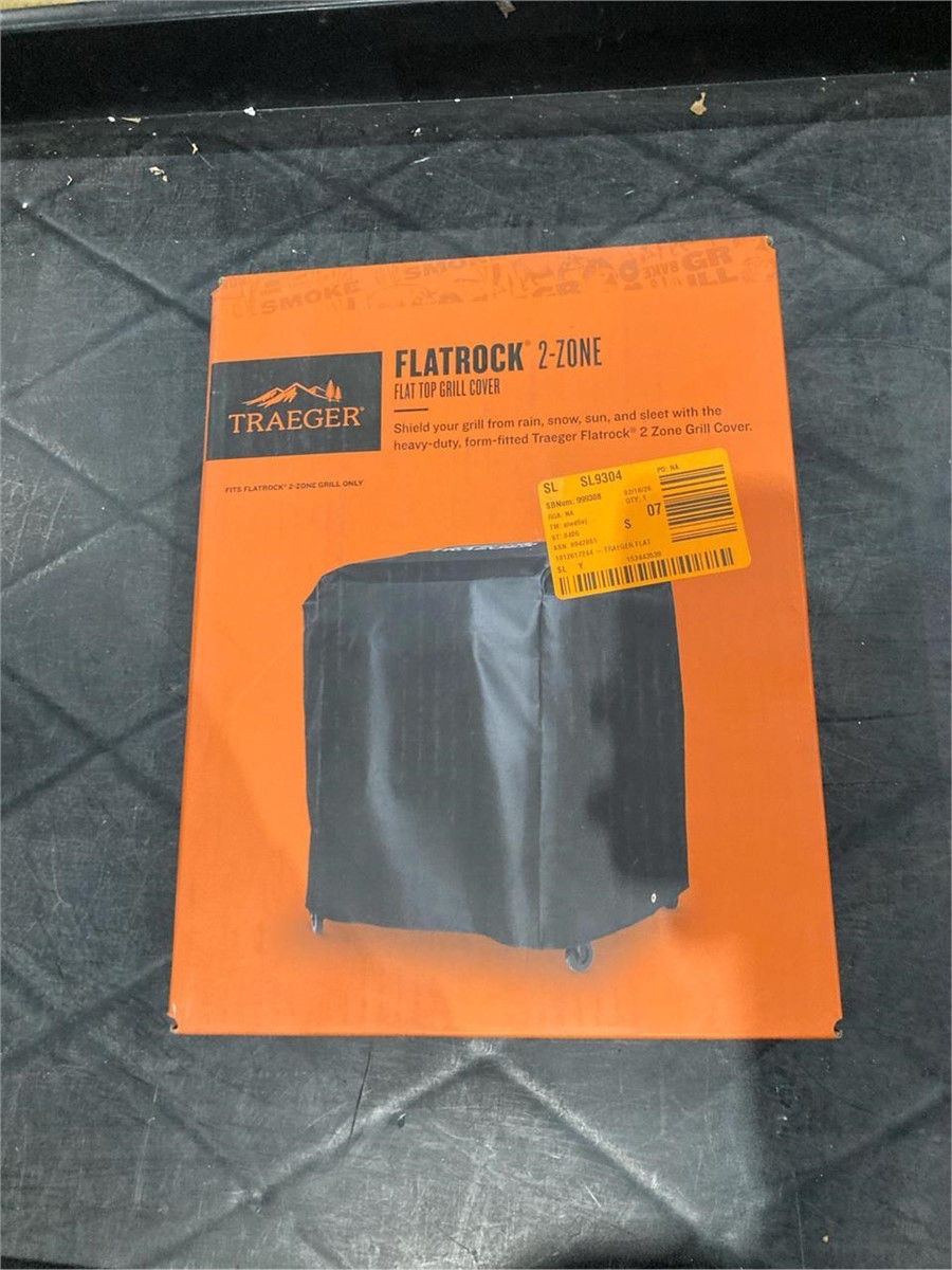 This Grill Cover is designed to weather any season on your backyard patio. An updated design features durable PVC backing and enhanced performance for your peace of mind. Plus, all-weather coverage means you don't have to worry when the sun is blazing or rain is pouring.. Traeger Flatrock 2 zone grill cover protects from the elements. Heavy-duty, waterproof materials, built to last all year long. Form-fitted grill cover for Flatrock 2 zone grill.