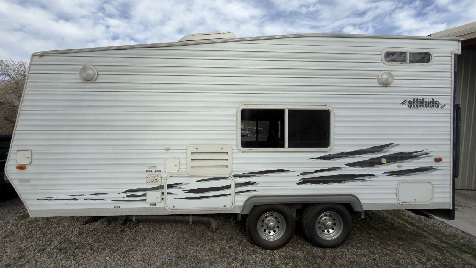 2005 Eclipse Attitude 23' Toy Hauler Camper. We bought it 3 years ago and put $5,000 into repairs which included complete resealing, water tank repairs, propane lines along with others. It's been stored in a covered parking since. We never use it so we are selling it.