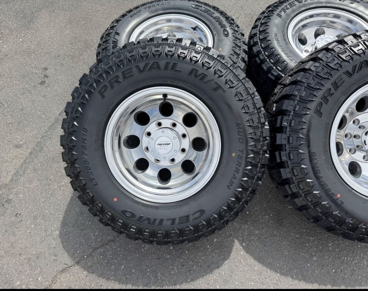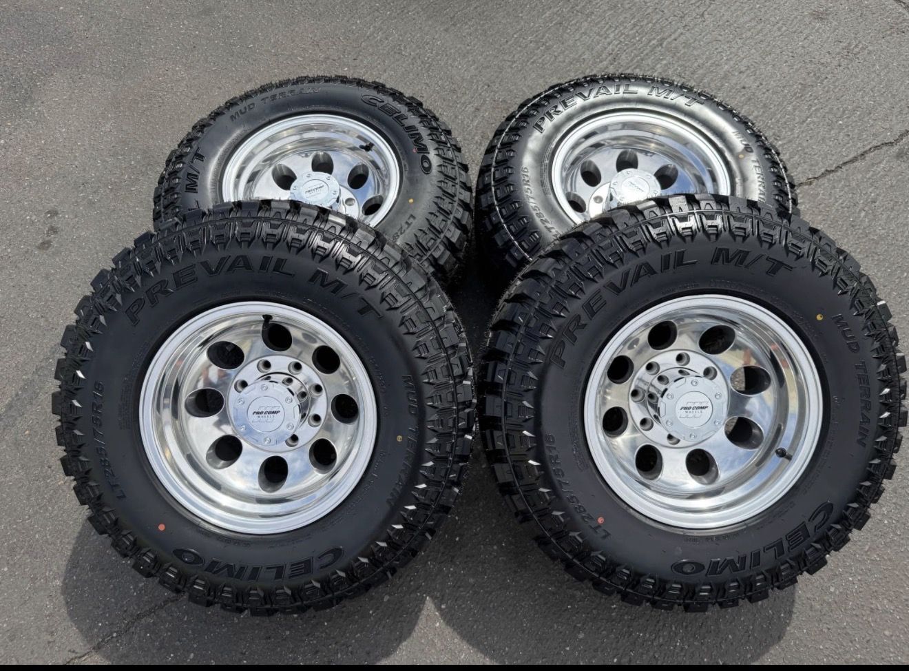 ApplePayLocated in SLC Brand new package! 16x10 Pro Comp Mod Alloy -25et offset. Mounted and Balanced on a brand new set of LT285/75r16 load E 10 ply 80 psi tires. Celimo MT. 8x6.5 (8x165.1) bolt pattern. These fit Dodge Ram 2500 3500 Cummins, PRE 2011 Chevrolet Silverado GMC Sierra Duramax, and PRE 98 Ford F250 F350 OBS Superduty trucks.