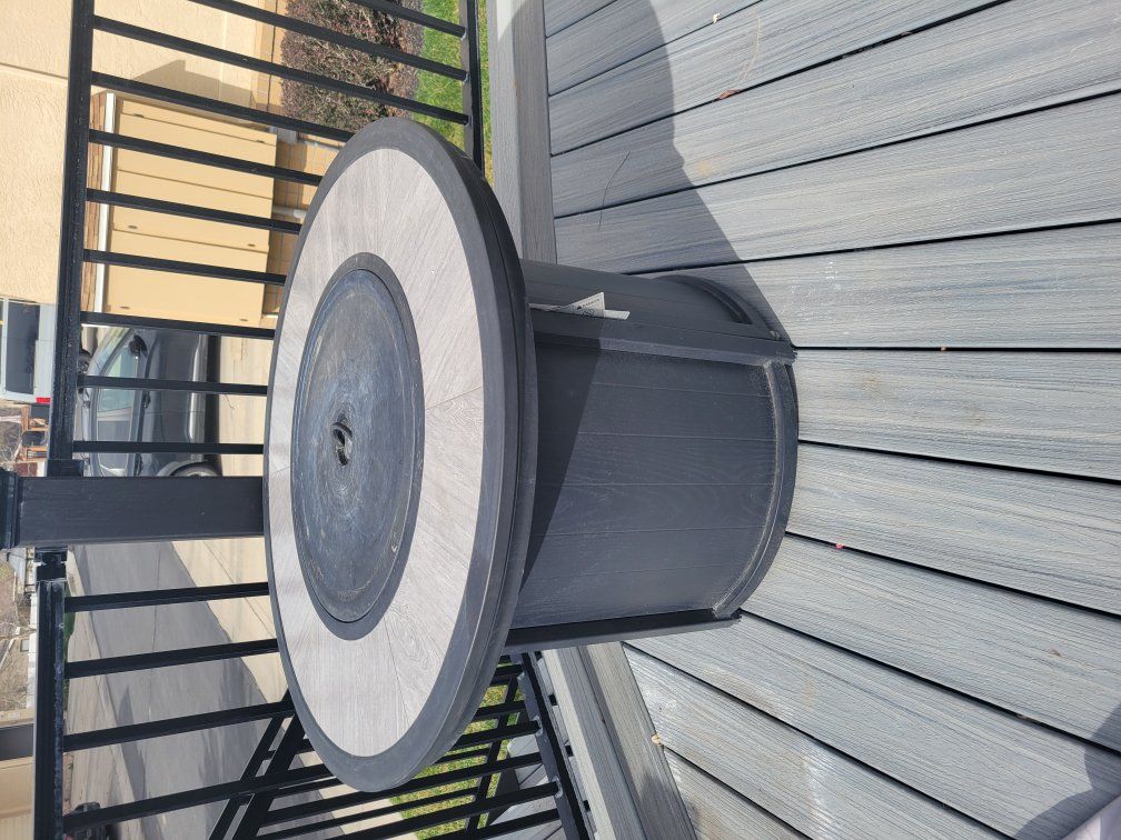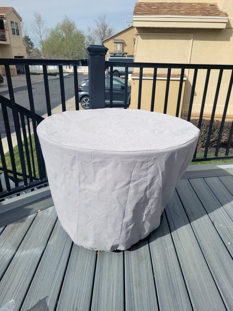 Venmoround gas fireplace with co er and extra bag of glass fireplace beads. 36" in diameter. 24" high