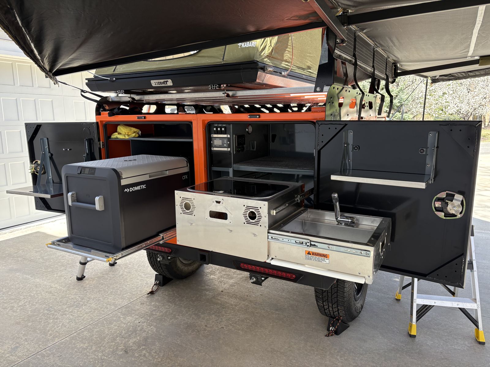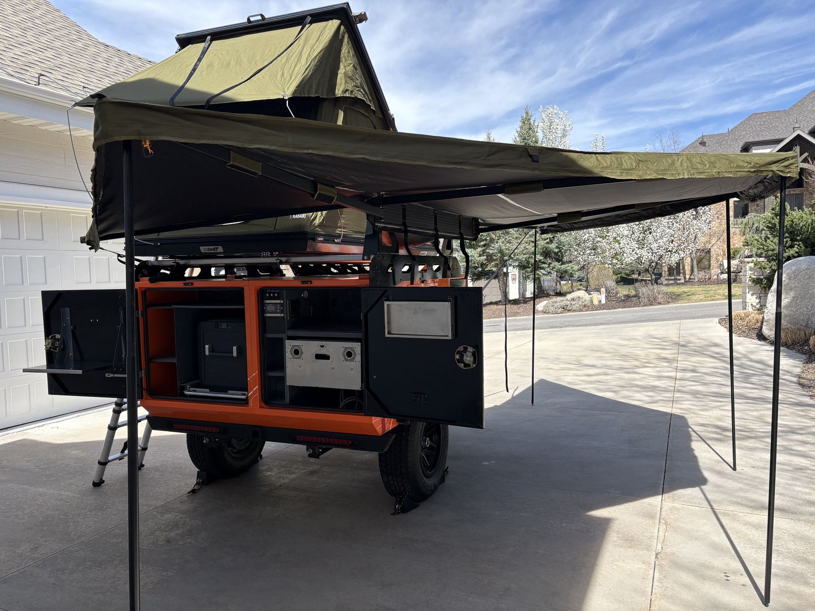 Escape the pavement and create your own base camp anywhere with this fully equipped Off Grid Switchback overlanding trailer. Designed for comfort in the wild, it features a 23 Zero Kalbari rooftop tent, 23 Zero 270’ awning, and a hot water outdoor shower with enclosure — so you can set up camp in minutes and relax no matter how remote your destination.