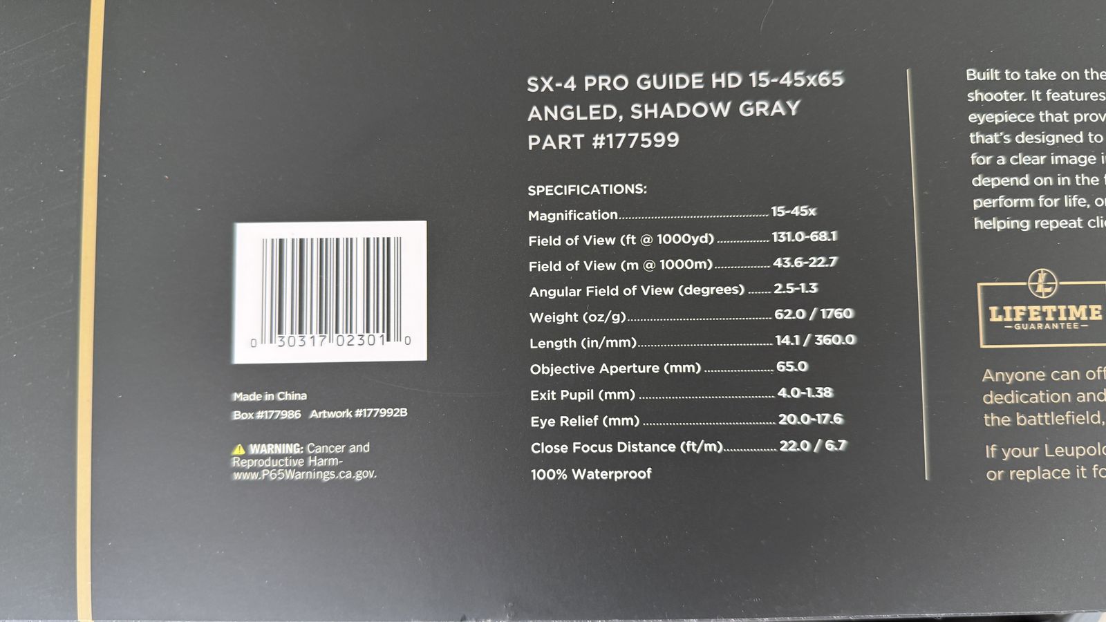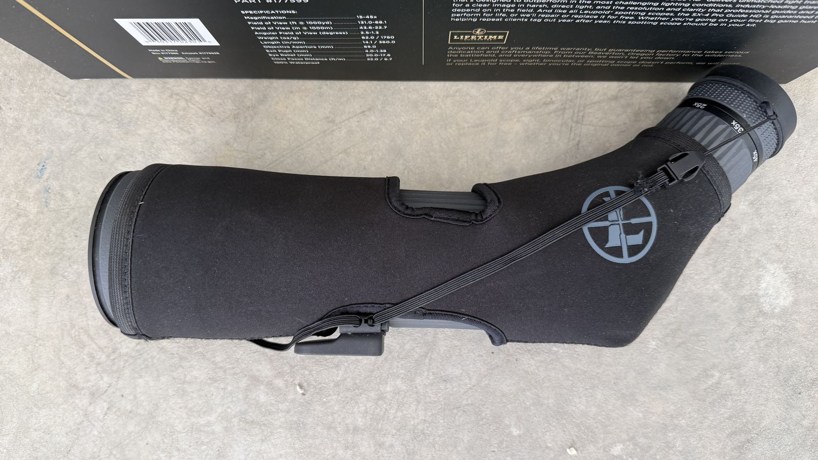 15-45x65mm. Barely used, only taken on a few hikes. Selling because I upgraded to a Swarovski.