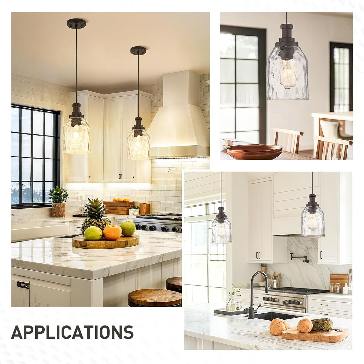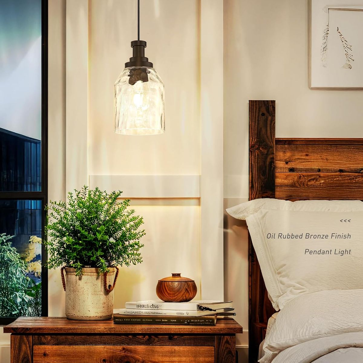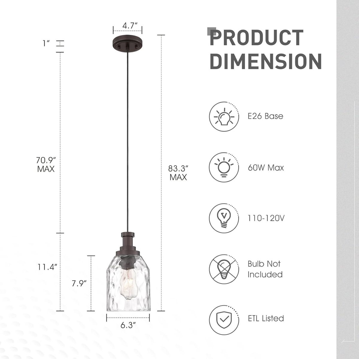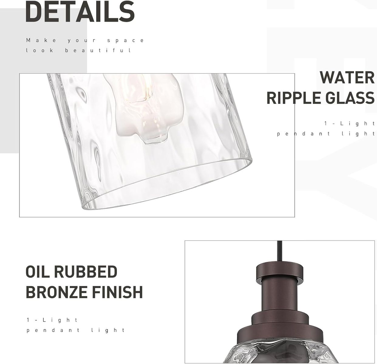 About this item - FARMHOUSE & RUSTIC: Built with sturdy metal in a warm, oil rubbed bronze finish and paired with a water ripple glass shade, these ceiling hanging light creat a sense of flow and elegance, adding cozy charm to your space.