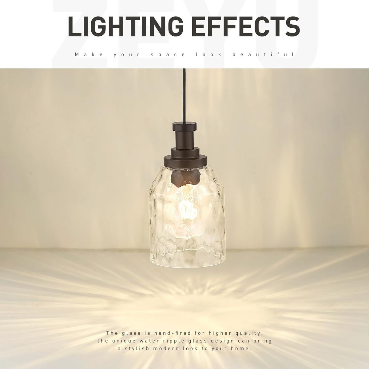 ApplePayzeyu Modern Pendant Lights Kitchen Island 2 Pack, 1-Light Hanging Pendant Lighting for Dining Room, Water Ripple Glass Shade, Oil Rubbed Bronze Finish, ZG33M1L-2L ORB-WG