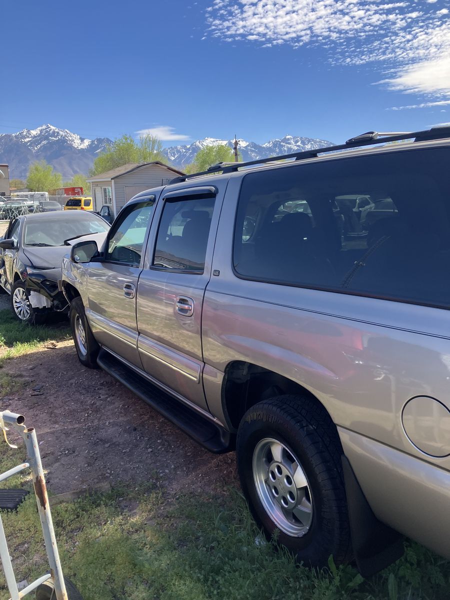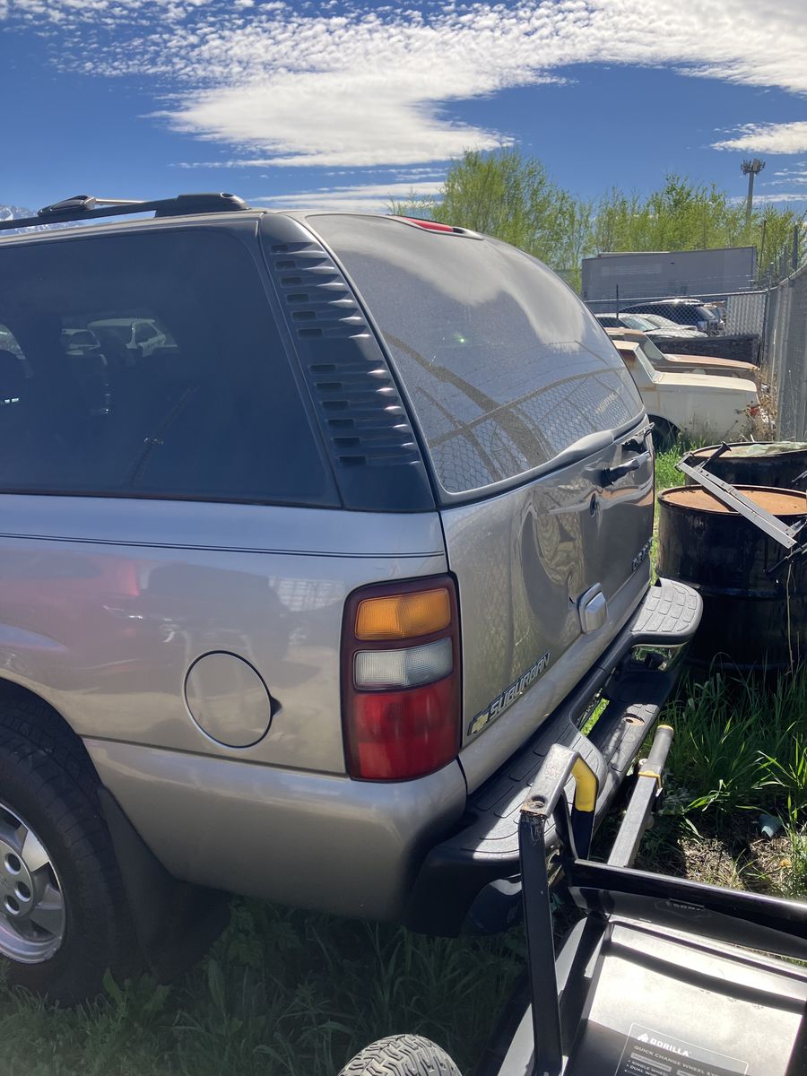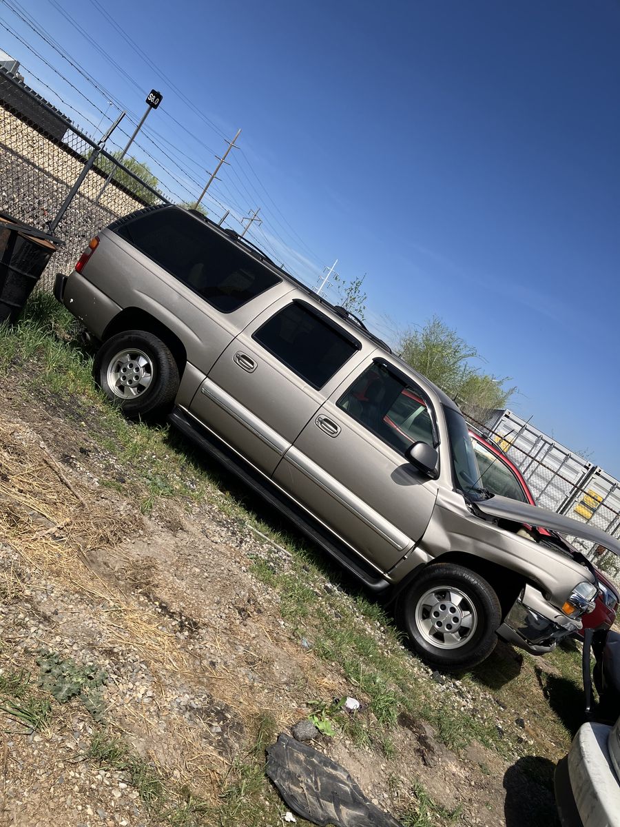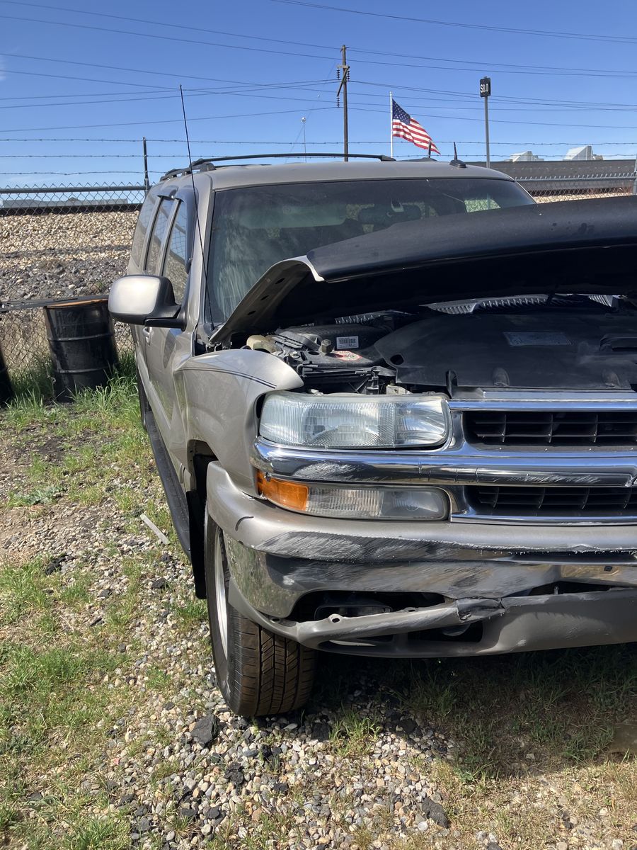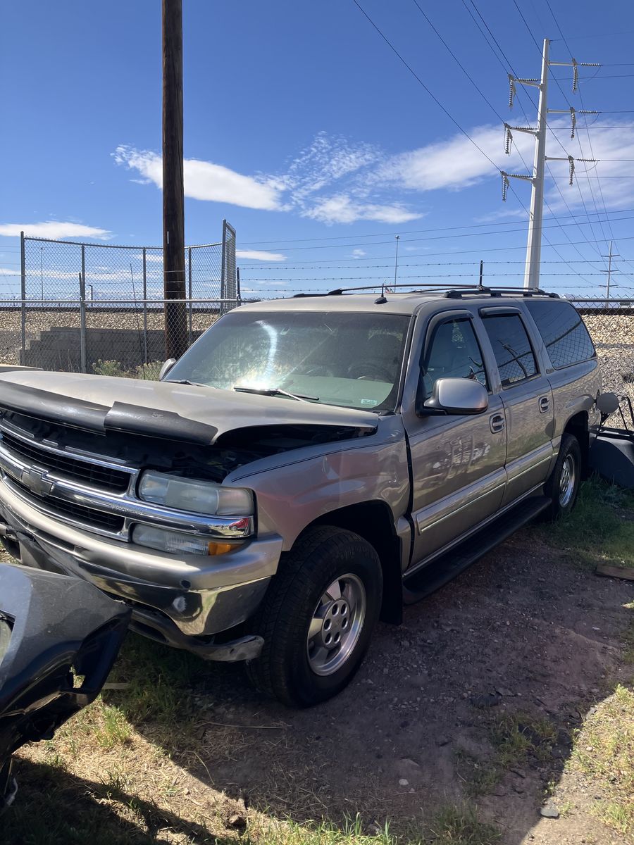 2002 Chevrolet Suburban 1/2 ton 4X4. Project or parts. This was wrecked. I do not know it’s history. I do have a key It does run. However due to the damage it does not drive Could it be fixed? possibly but it would require a new frame. The interior is in great condition considering its age. also it has leather power seats, Overhead video and player under the seat. Exterior back of the fenders is good No dents, good paint, no rust The tires look like brand new The transmission, transfer case, and axles are still there and don't appear to be messed with. I will not part it out.
