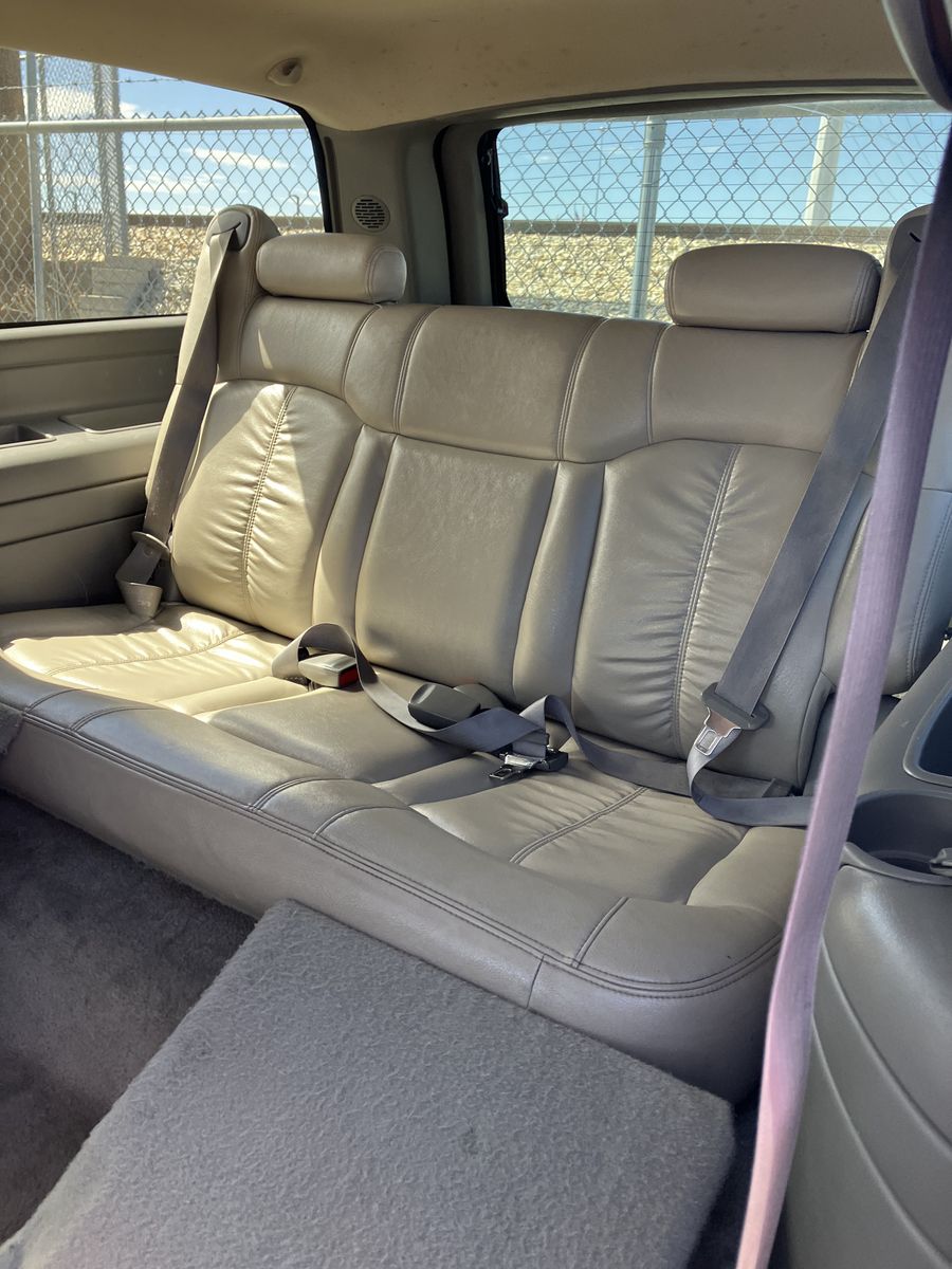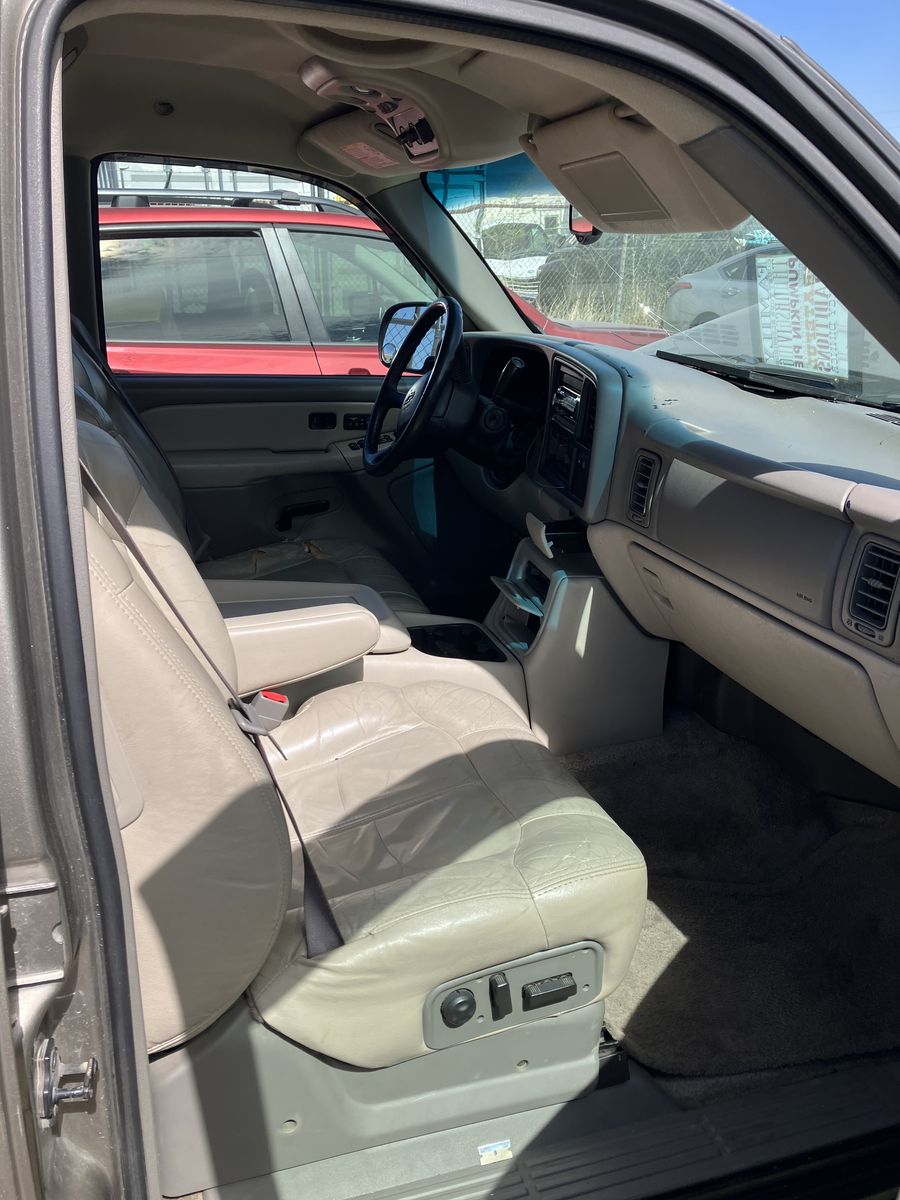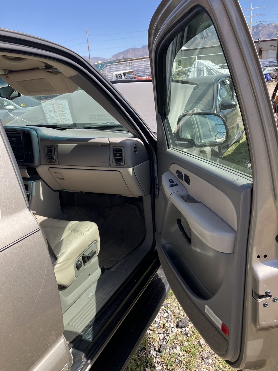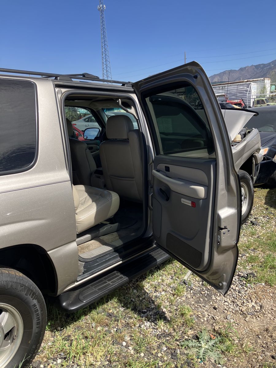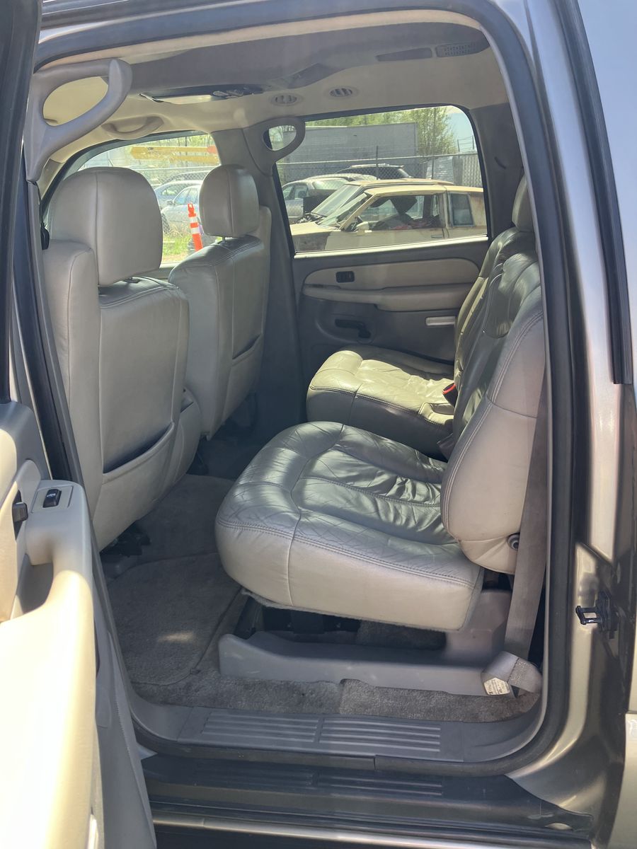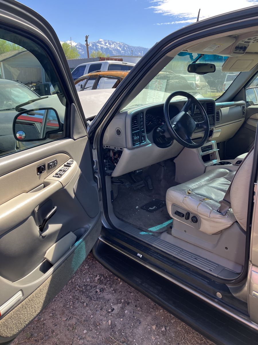 2002 Chevrolet Suburban 1/2 ton 4X4. Project or parts. This was wrecked. I do not know it’s history. I do have a key It does run. However due to the damage it does not drive Could it be fixed? possibly but it would require a new frame. The interior is in great condition considering its age. also it has leather power seats, Overhead video and player under the seat. Exterior back of the fenders is good No dents, good paint, no rust The tires look like brand new The transmission, transfer case, and axles are still there and don't appear to be messed with. I will not part it out.