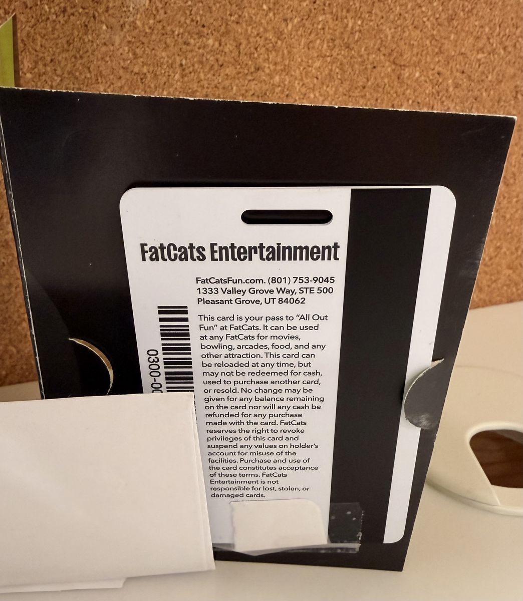 ApplePayHave a $50.00 Fat Cats Gift Card. Can be used for anything, food, bowling, arcade, mini golf, movies… Will also throw in a card that already has 900 Tickets Loaded on it!!! Asking: $40.00 OBO Cash, Venmo, Apple Pay See Less