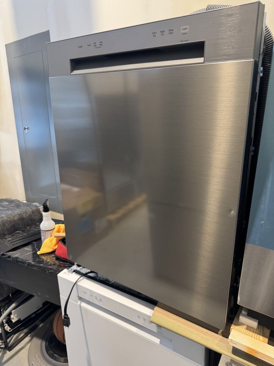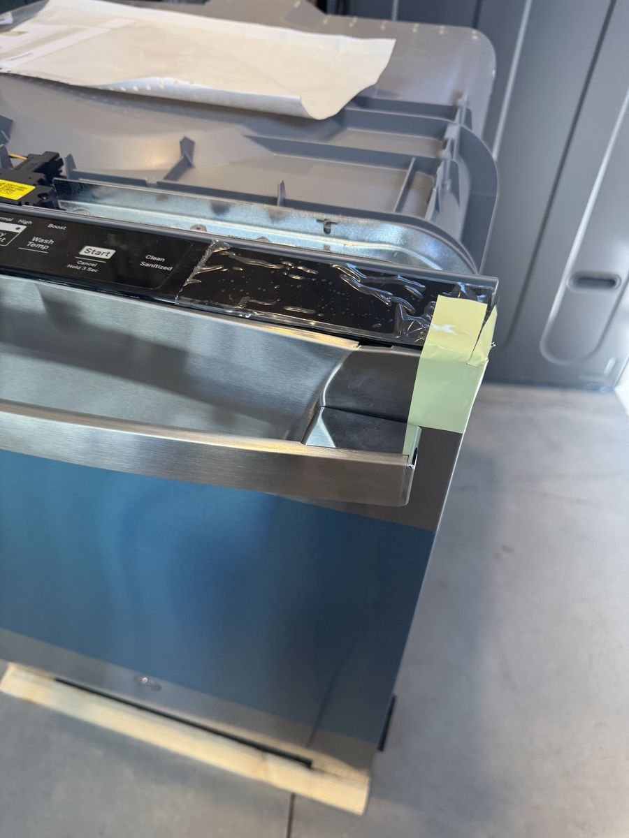New scratch and dent dishwashers, all except the LG below the blue film dishwasher are $$400. These are Dishwashers that retail for over $599 and $699.