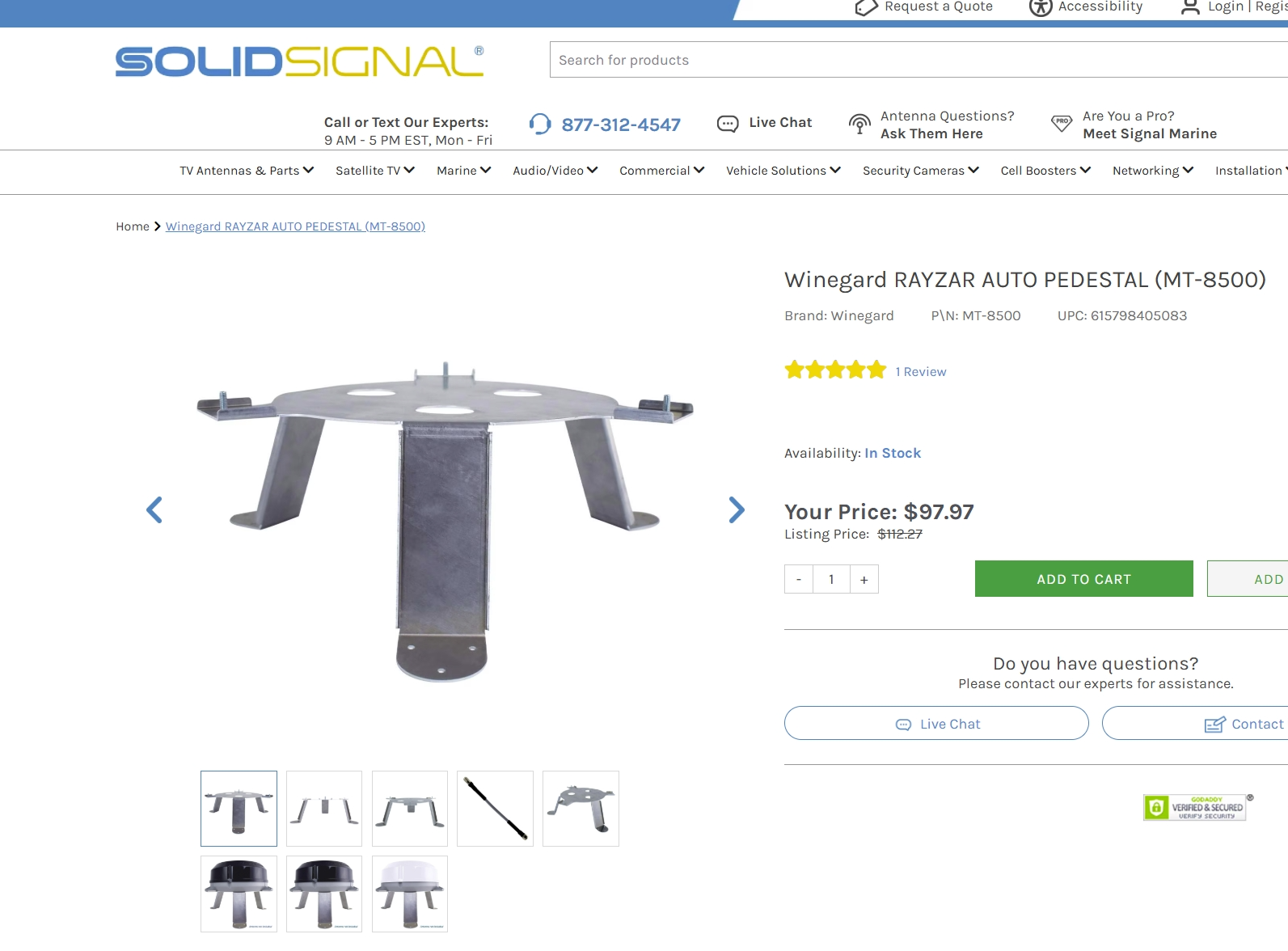 This is new in box. Bought for my son's motorhome, but he sold the motorhome before we could install. We have one on our motorhome. It includes both the Antenna and a stand for ease of installation. The Winegard Rayzar Automatic RZ-8500 provides maximum HDTV content available in your area, whether at home or on the road, capable of receiving both VHF and UHF signals. The unit automatically aims towards the channels to provide more coverage. The Rayzar Automatic is embedded with an ultra-low noise (1db typical) amplifier to give you the absolute best signal quality. Currently selling for $480 for the antennae and $100 for the stand.