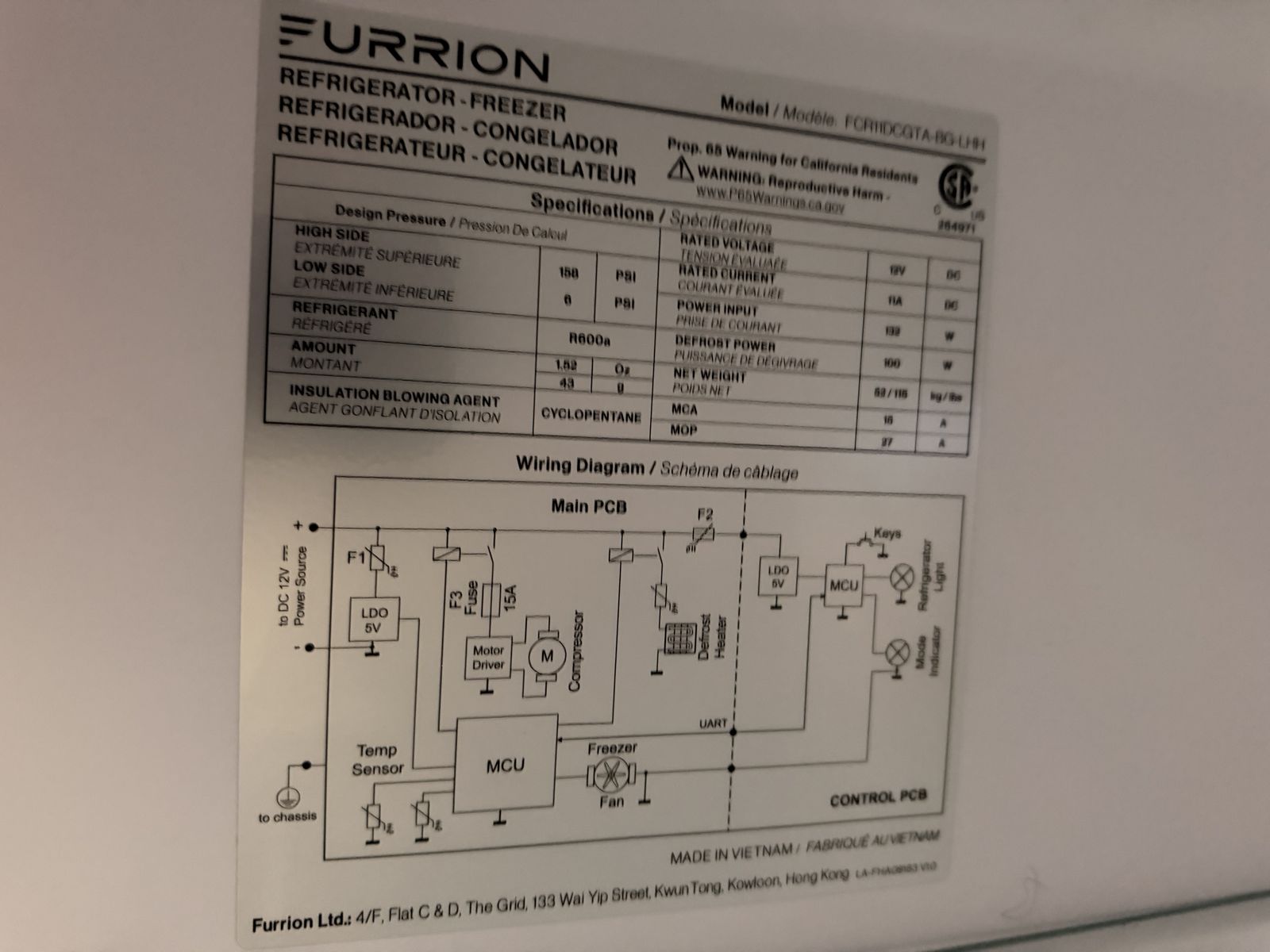 Venmo12 volt Furrion fridge. Good condition