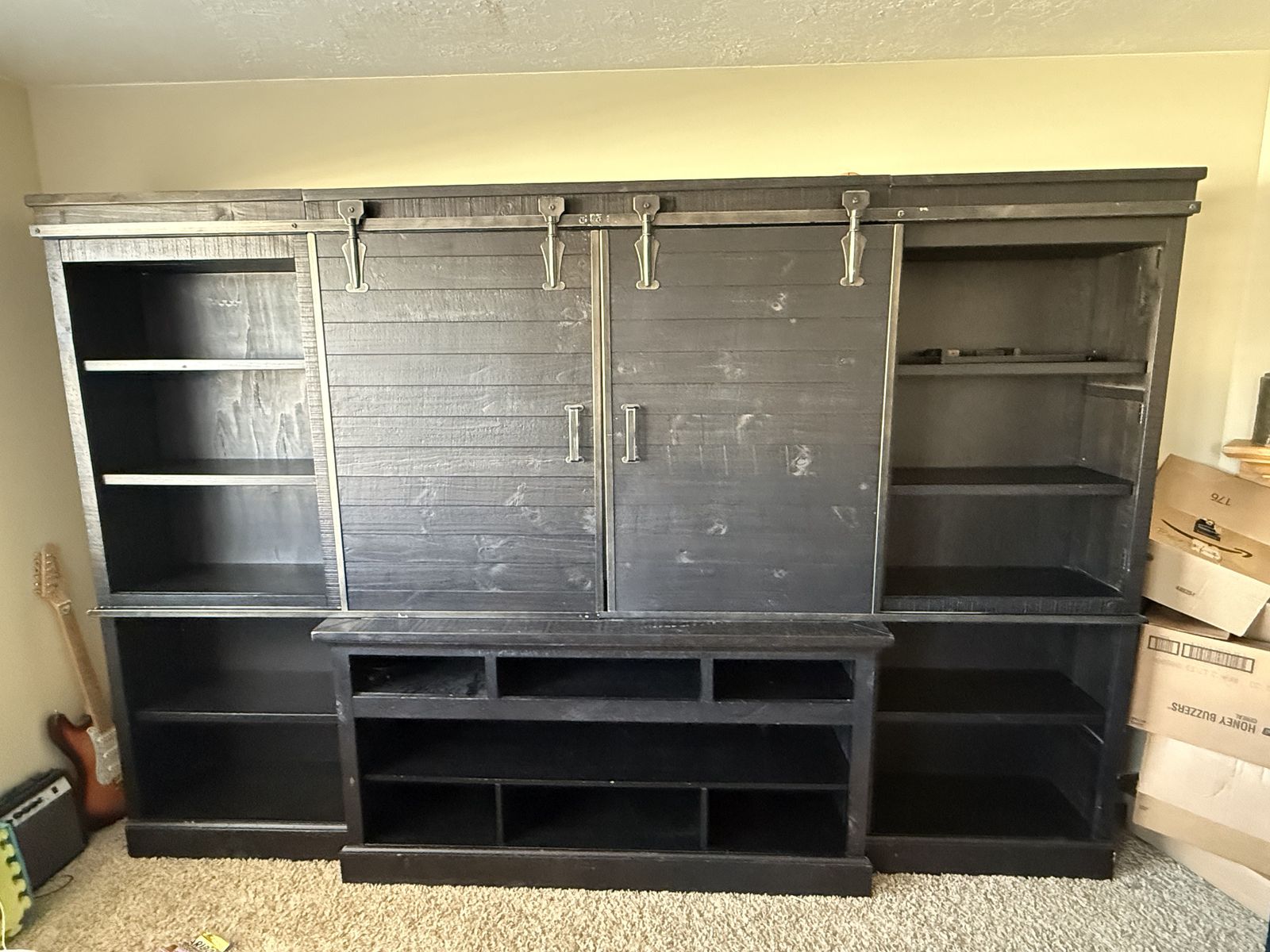 VenmoThis was bought from Ashley Furniture 2 years ago. It does fit a 72-80 in big screen TV. It’s a beautiful living room piece. I bought it for $2300.
