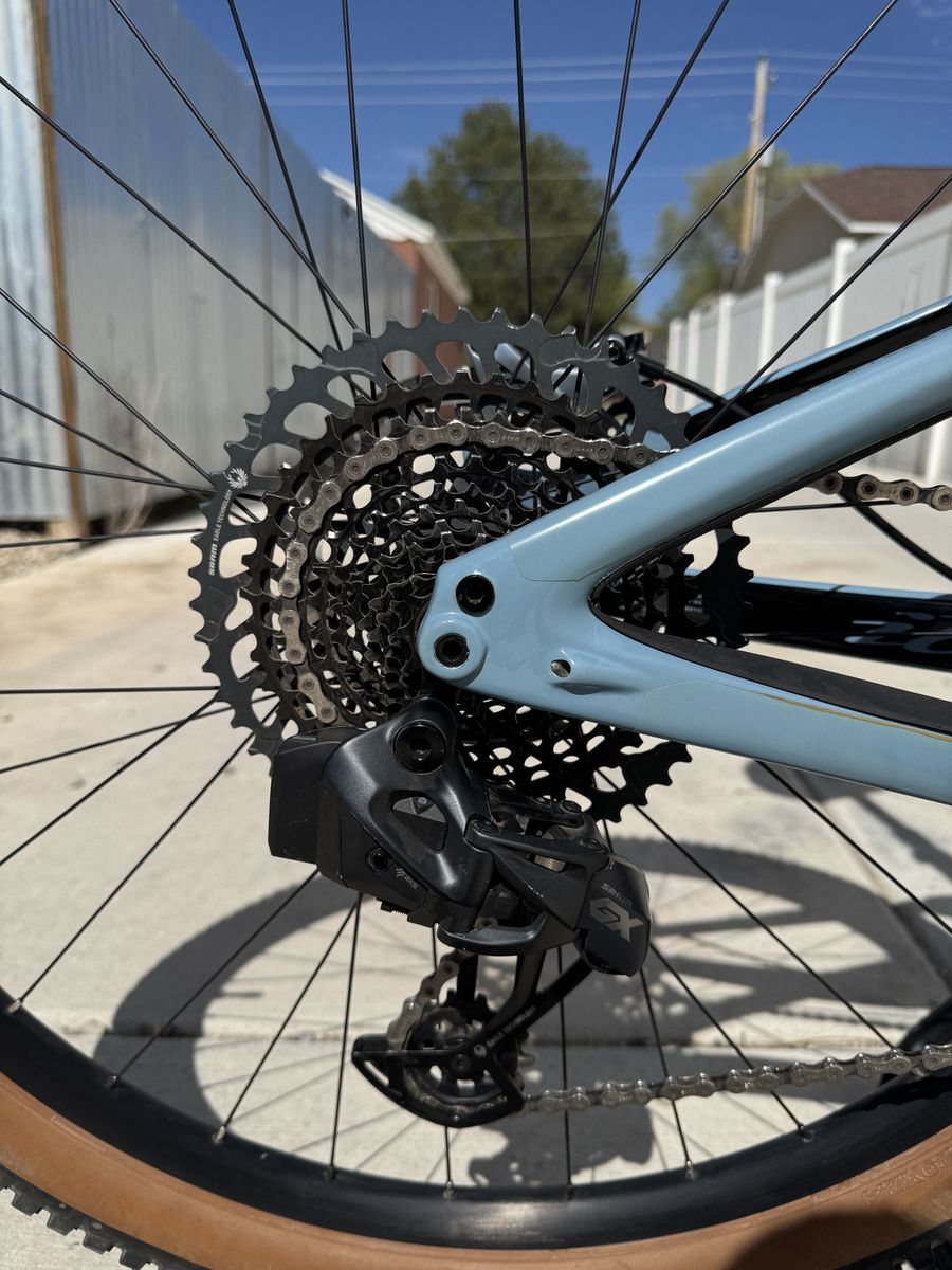 Full GX AXS drivetrain. 175mm Descendant cranks w/ 32t chainring. 10-51t cassette.