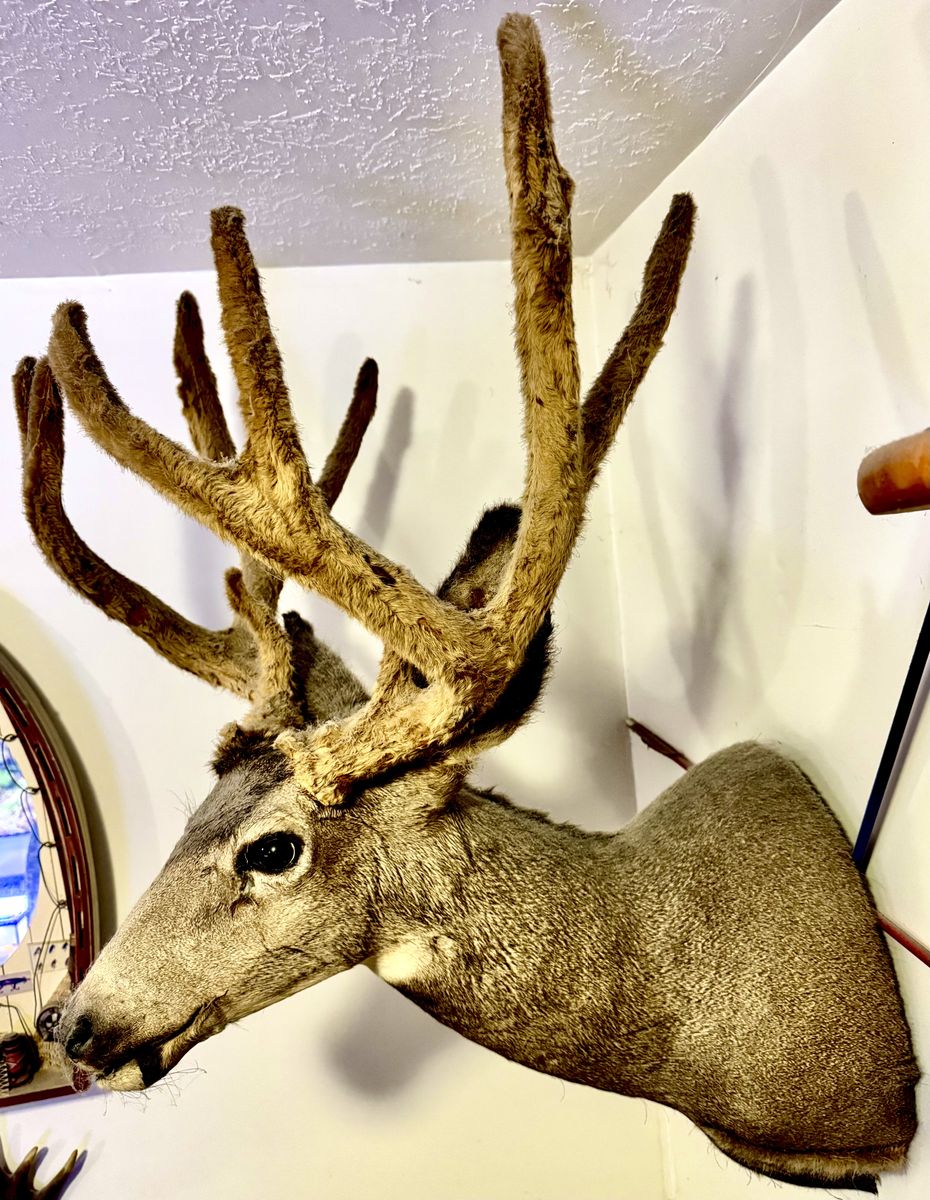 VenmoMy Dad took this Buck many years ago and he's been remounted at least twice. Very impressive deer, I believe he scored right around 170". As you can see his front right side is crab clawed. His backs are very impressive and velvet is still in good condition. Mount is not great but looks okay from across a room. If you're in to big Velvet bucks, this one's for you. $500.00 obo.