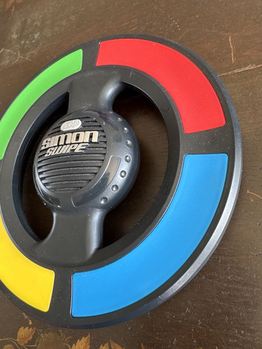 Up for sale is this 2013 Hasbro Simon Swipe Handheld Electronic Game that is in used condition. Item has been tested and it works as it should--both lights and sound.. Takes 3 AA batteries, which are included. Match the patterns on the screen by swiping in the correct direction. The original Simon game with a twist. I obtained this item at a store which sells pre-owned goods. We are a non-smoking family. All items are guaranteed. See photos and remarks above to evaluate the condition of this item