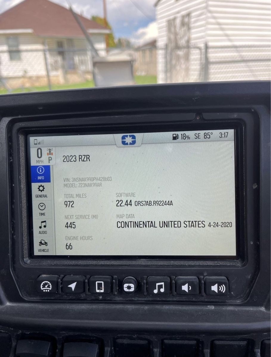 Bought brand new in 2023, and only been used a handful of times. Only 66 hours and 972 total miles. Comes with bluetooth audio, speaker system, navigation, touchscreen, windshield, and roof. No trades. Title in hand.
